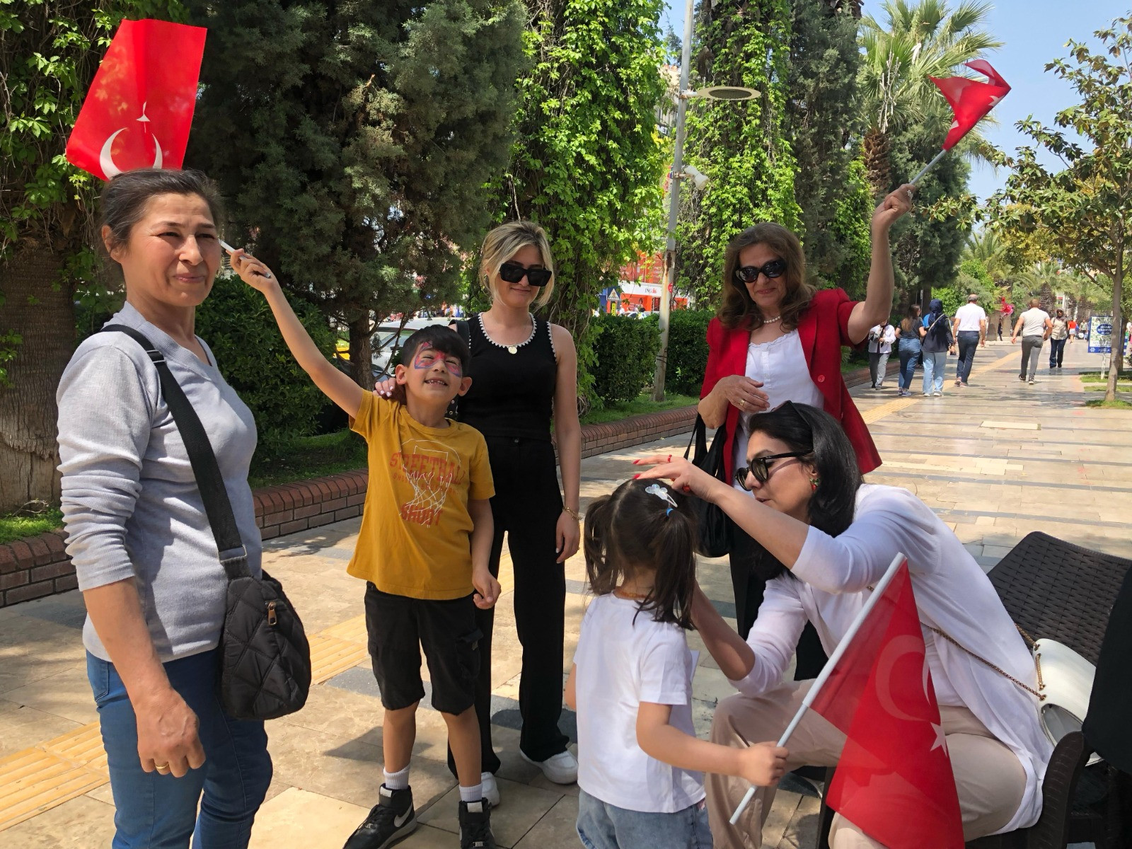 İYİ Parti Efeler İlçe Kadın, Aile ve Sosyal Hizmetler Başkanı ve Emekli Öğretmen Rasime Çebişci, "Bugün benim de bayramım" diyen Çebişci, partisiyle birlikte Aydın halkına keyifli bir etkinlik sunduklarını belirtti. Çebişci, Boyama kitabı, pastel boya, balon, bayrak ve yüz boyama etkinlikleriyle renkli bir etkinlik düzenlediklerini ve Aydın halkının etkinliğe yoğun ilgi gösterdiğini dile getirdi. Çebişci, "Okul öncesi öğretmen olarak eski anıları yaşamak benim için çok mutluluk getirdiğini." ifade etti.