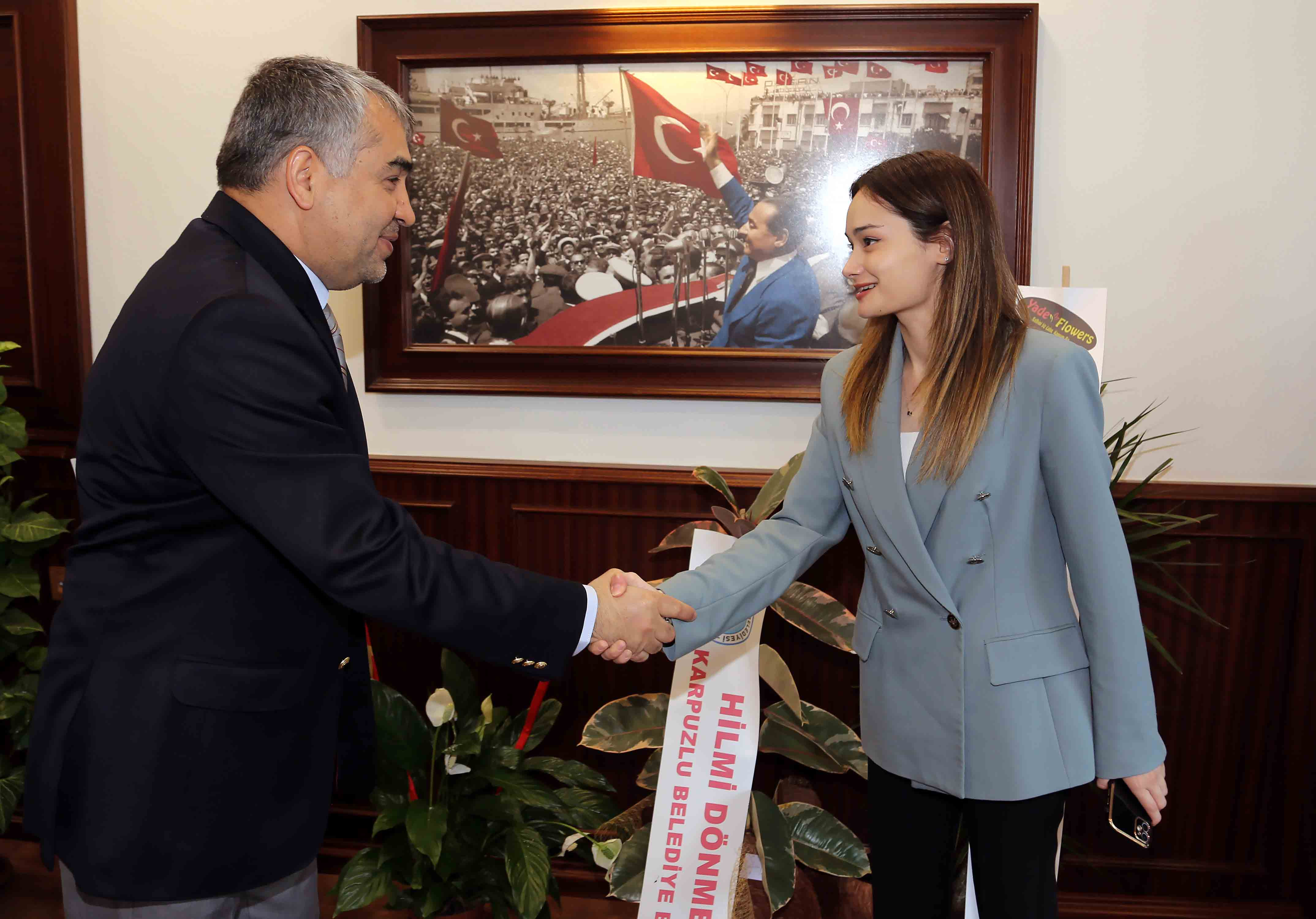 Karpuzlu Belediye Başkanı Hilmi Dönmez, Karpuzlu Kaymakam V. Merve Ayık, Yenipazar Kaymakamı Şule Demirtaş, 3 Mayıs 2023 tarihinde Üniversitemiz Rektörü Prof. Dr. Bülent Kent’i makamında ziyaret etti.