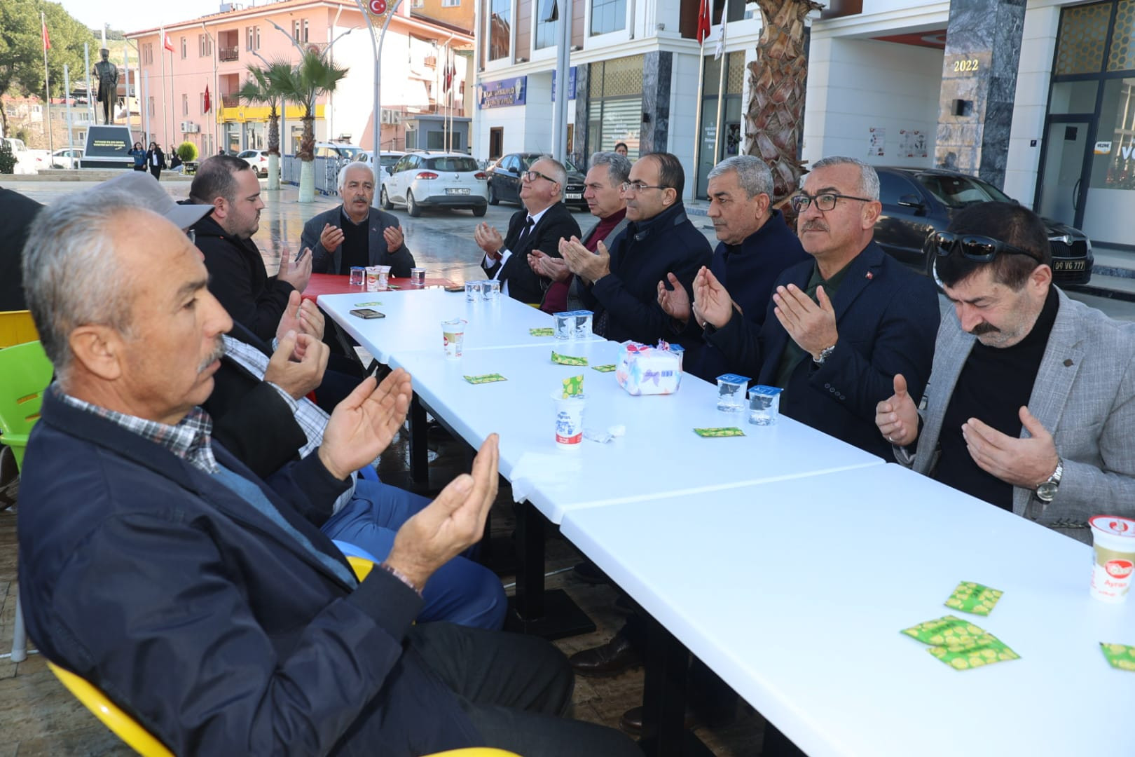 Koçarlı Cumhuriyet Meydanında düzenlenen tavuk pilav hayrı vatandaşların yoğun katılımı ile gerçekleşirken, depremde hayatını kaybedenler için dualar edildi.