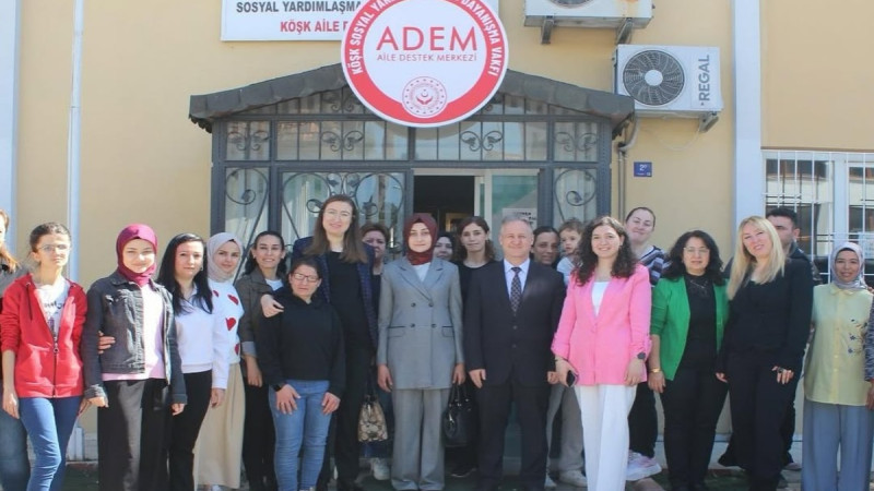 Köşk Kaymakamı Tuğba Polat ve Refik Kaymakam Tuğçe Uzunyol birlikte Köşk Aile Destek Merkezi (ADEM)'i "8 Mart Dünya Kadınlar Günü" münasebetiyle ziyaret ettiler.