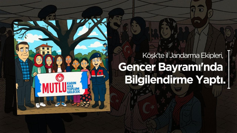 Aydın'ın Köşk ilçesinde her bayram geleneksel olarak düzenlenen Gencer Bayramı, bu yıl da coşkuyla kutlandı. Bayram etkinliklerine katılan Aydın İl Jandarma Komutanlığı ve Köşk İlçe Jandarma Komutanlığı personeli, anlamlı bir çalışmaya imza attı. 'Mutlu Aile, Mutlu Kadın, Mutlu Toplum, Mutlu Gelecek' mottosuyla hareket eden jandarma ekipleri, yaklaşık 450 vatandaşı bilgilendirme faaliyetlerinde bulundu.
