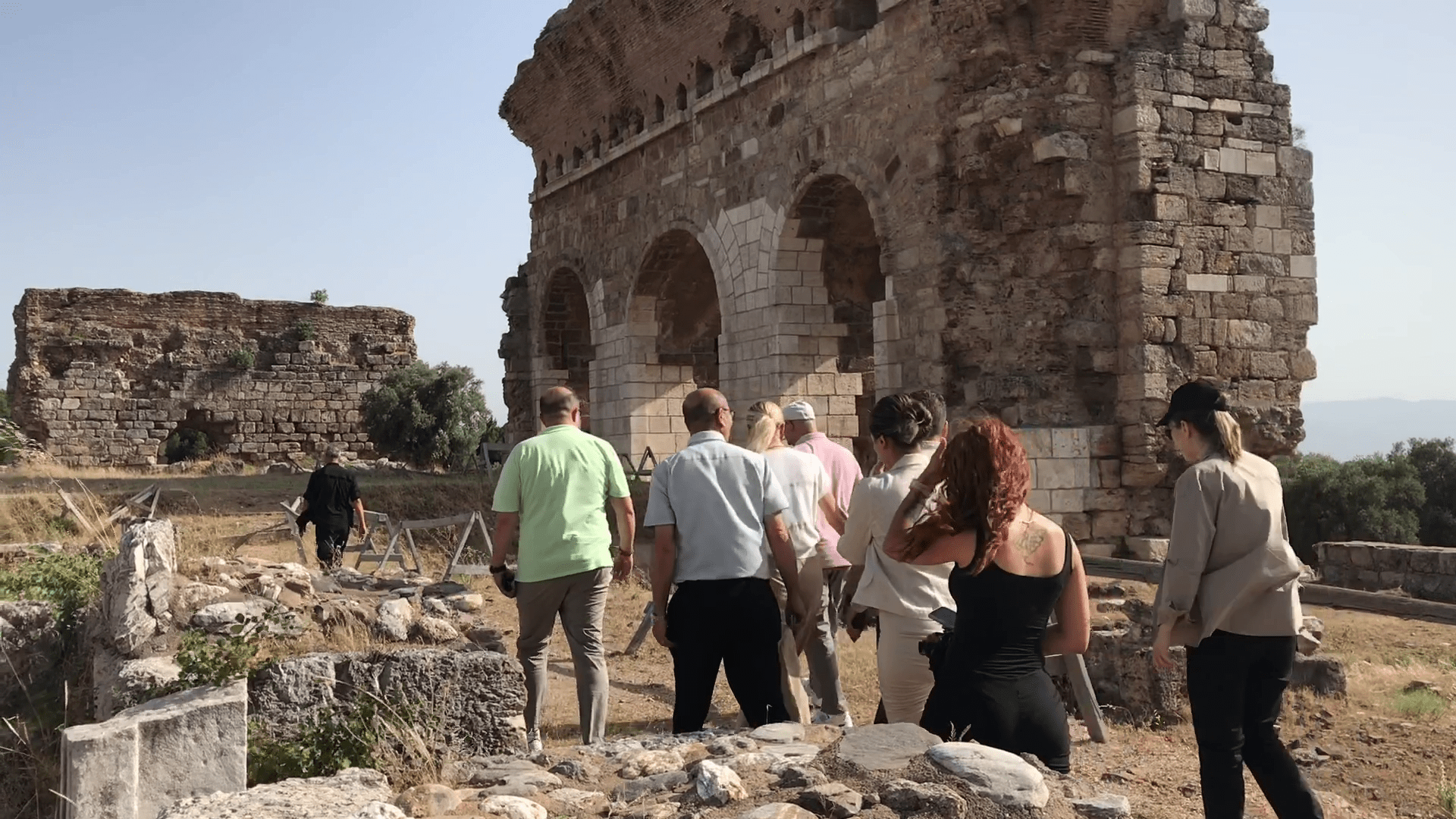Pervin Ersoy, öğle yemeğinin ardından Tralleis bölgesinde yer alan Üç Gözler Antik Kenti'ni ziyaret etti. Antik kentin büyüleyici kalıntıları arasında yapılan gezide, Aydın İl Turizm Müdürü Ahmet Demir'de Pervin Ersoy'a eşlik etti. Heyet, antik kent hakkında detaylı bilgiler aldı ve kentin tarihi dokusunun korunması için yapılan çalışmaları yerinde inceledi.
