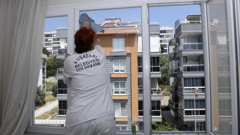 Kuşadası Belediyesi'nin yatağa bağımlı, yaşlı veya engelli olmaları nedeniyle ev işlerini ve kişisel bakımlarını yapmakta güçlük çeken hemşehrileri için kurduğu Sosyal Yardım İşleri Müdürlüğü’ne bağlı Evde Bakım Birimi çalışmalarını sürdürüyor. 13 kişiden oluşan ekip ayda ortalama 320 haneye ziyarette bulunarak ihtiyaç duyan kişilerin ev temizliklerini ve kişisel bakımlarını gerçekleştiriyor. Her gün ortalama 16 evi ziyaret eden Evde Bakım Birimi personeli, gördükleri tadilat ve tamirat işlerini Fen İşleri Müdürlüğü yetkililerine bildiriyor. Yapılan başvuruların ardından sosyal incelemesi tamamlanan ve hizmetten yararlanmaları uygun görülen kişiler ise aldıkları hizmetten oldukça memnun. Evde Bakım birimi aynı zamanda kent sakinlerine daha kaliteli ve iyi bir hizmet sunabilmek amacıyla kısa süre içerisinde kadrosunu genişletmek için çalışıyor.