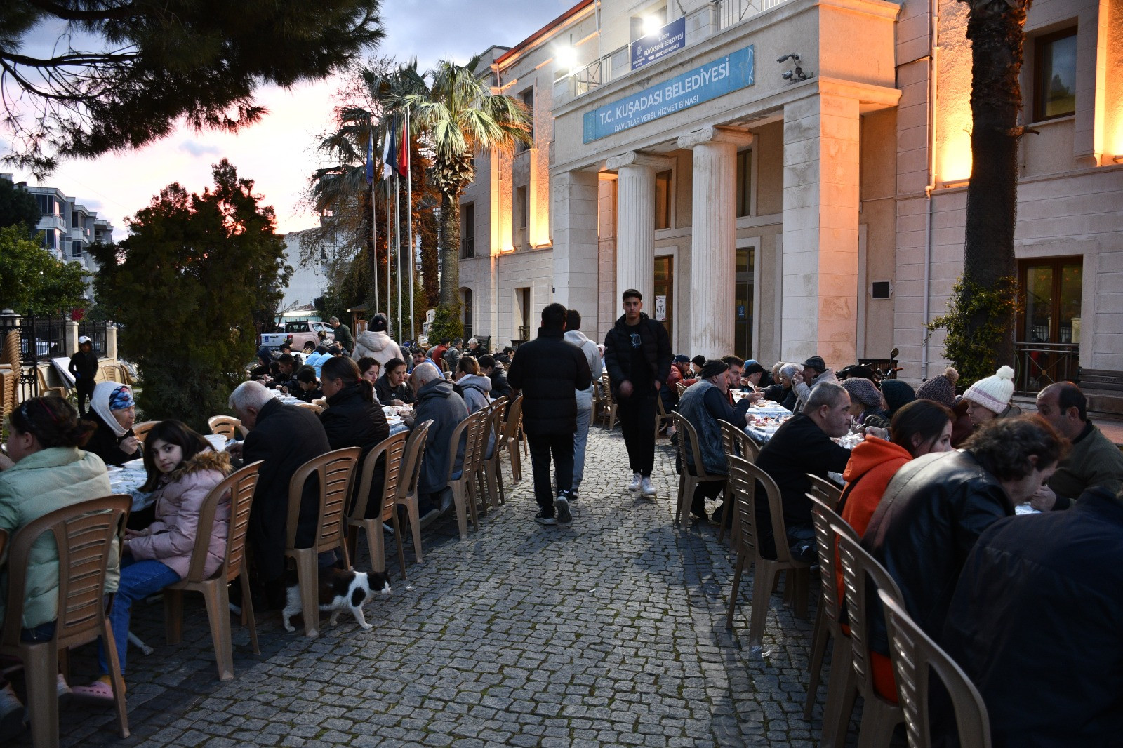 Kuşadası Belediyesi tarafından Davutlar Mahallesi ek hizmet binası bahçesinde düzenlenen iftar yemeğinde yüzlerce Kuşadalı bir araya geldi. İftar yemeğine Belediye Başkan Vekili Emre Fazlılar, Başkan Yardımcıları Seyfi Seyhan Suvari ve Remzi Çengel, Belediye Meclis Üyesi Funda Şenol ile Davutlar Mahalle Muhtarı Erol Yağcıoğlu katıldı. İftara katılan mahalle sakinleri oruçlarını dualar eşliğinde açtı.