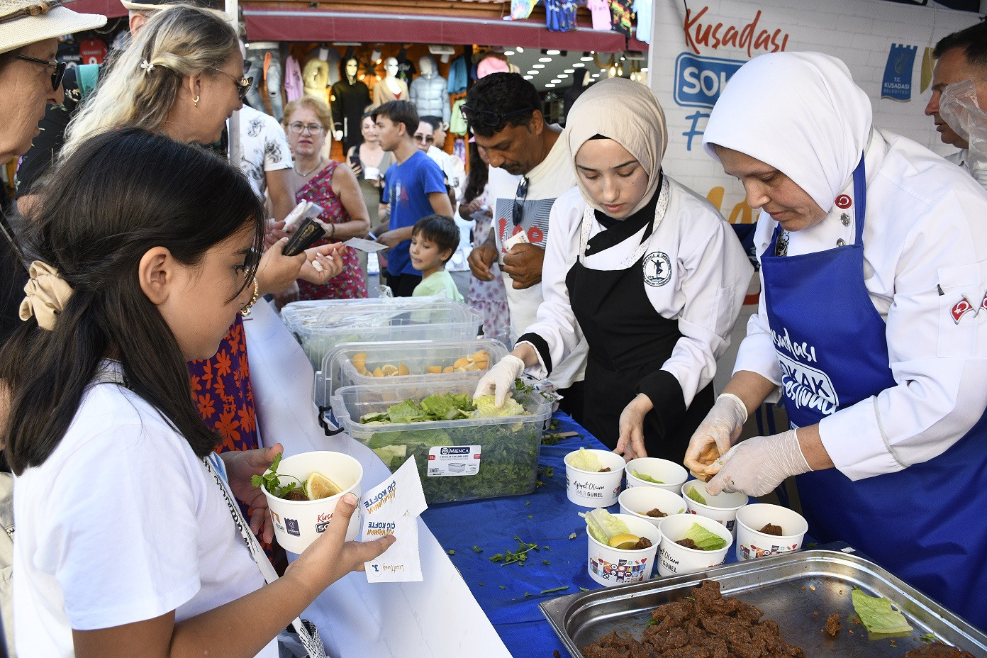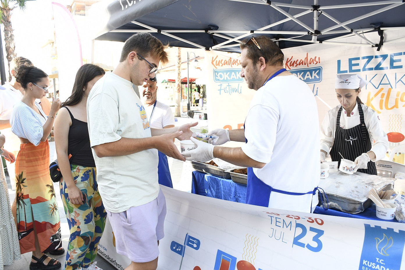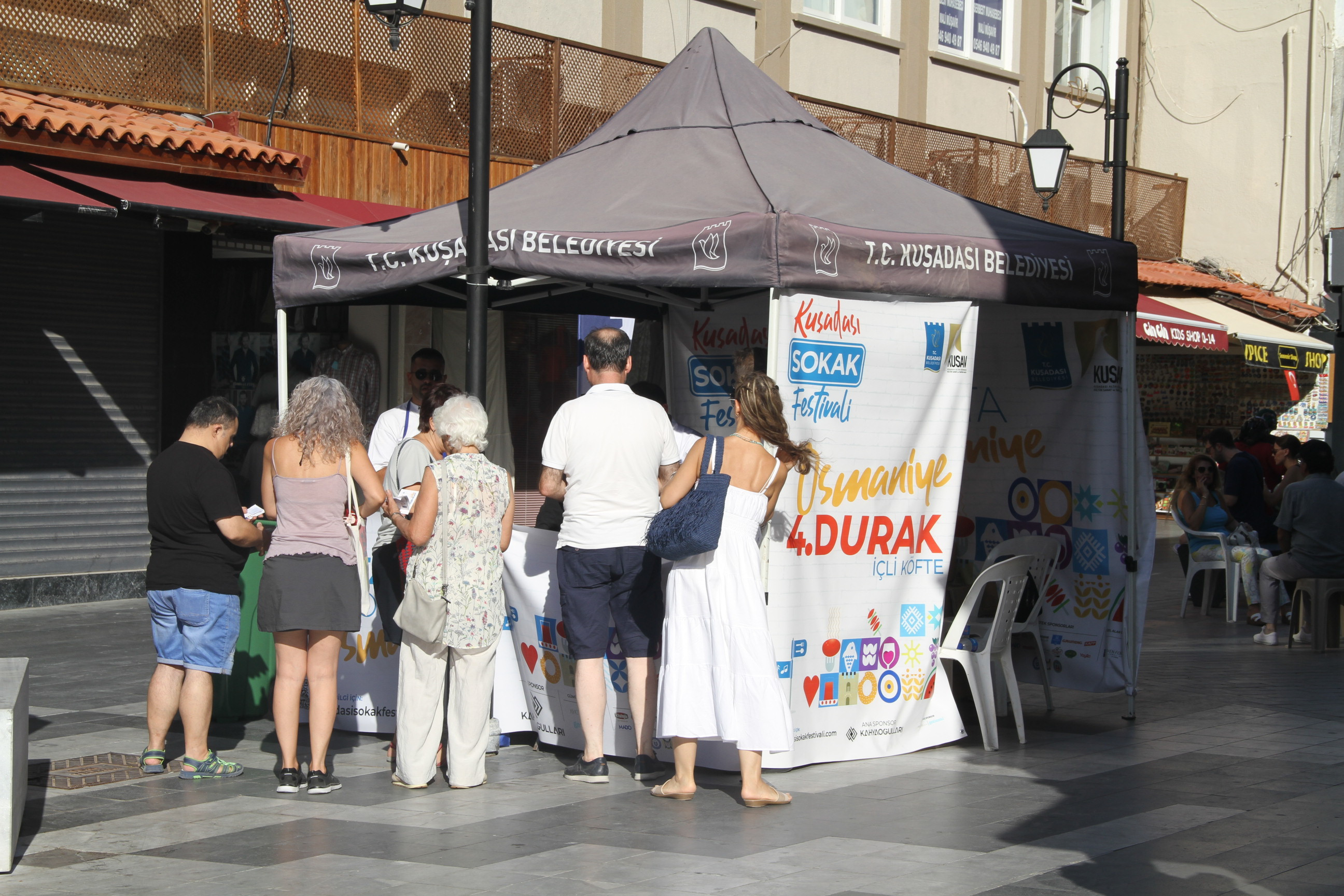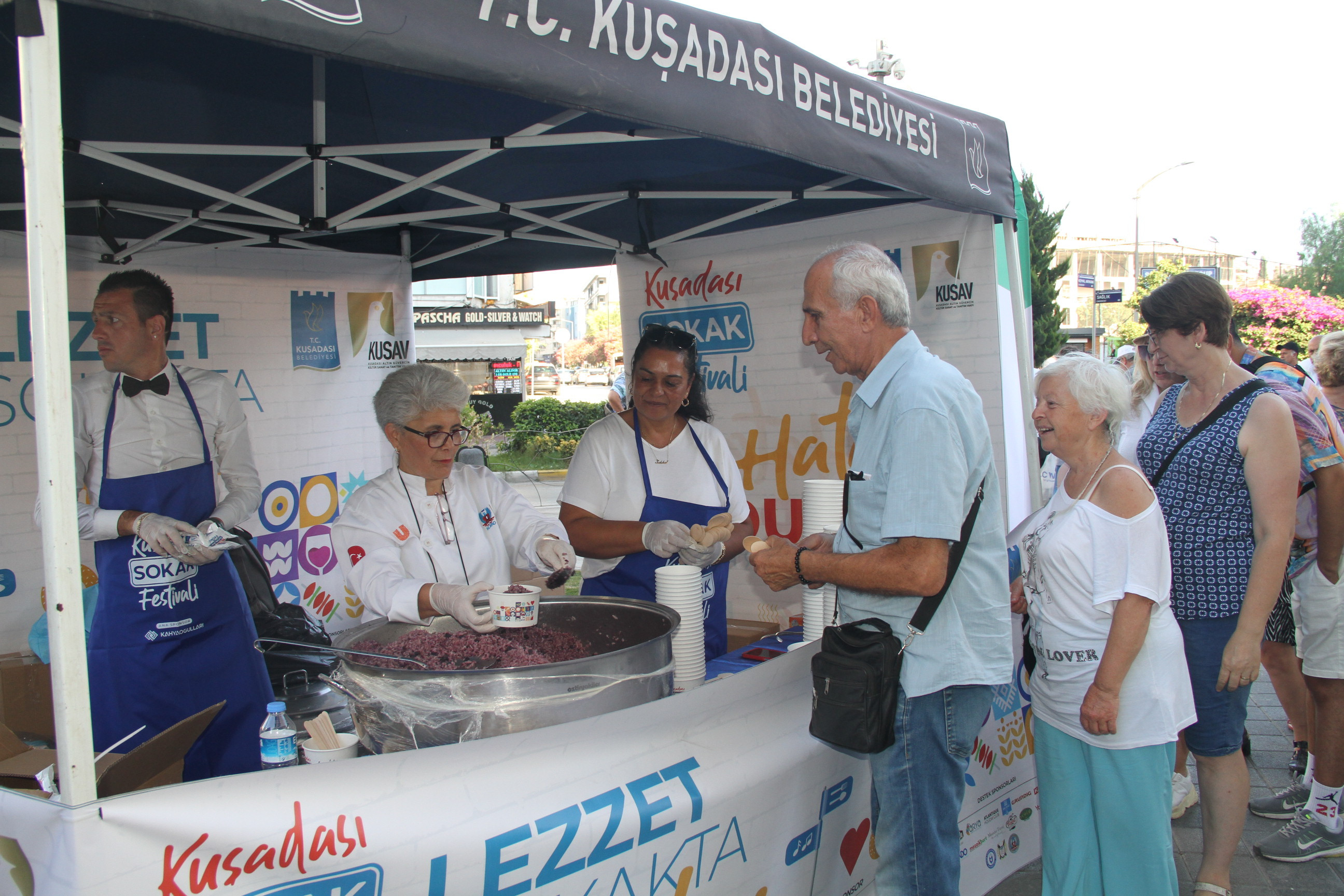 Kuşadası Sokak Festivali, depremzedelerle dayanışmayı ön planda tutan bir yaklaşımla, deprem bölgesinden 11 farklı kentin gastronomi kültürünü Kuşadası'na taşıyor. Geçtiğimiz yıl Ege Bölgesi ve Kuşadası'nın yöresel yemeklerini tanıtan lezzet durakları, bu yıl depremzedelerin lezzetli yemeklerini ikram ediyor. Balıkçılar Meydanı, Barbaros Hayrettin Paşa Bulvarı, Kale Kapısı, Kasım Yaman Parkı, Atatürk Meydanı Sanat Sokağı, Kaya Şavkay Meydanı gibi kentin farklı noktalarında kurulan lezzet duraklarında, Harput çorbası, öcce, çiğ köfte, kişir pilavı, kayısılı kavurma, beli kırık pilavı gibi yöresel yemekler yoğun ilgi görüyor.