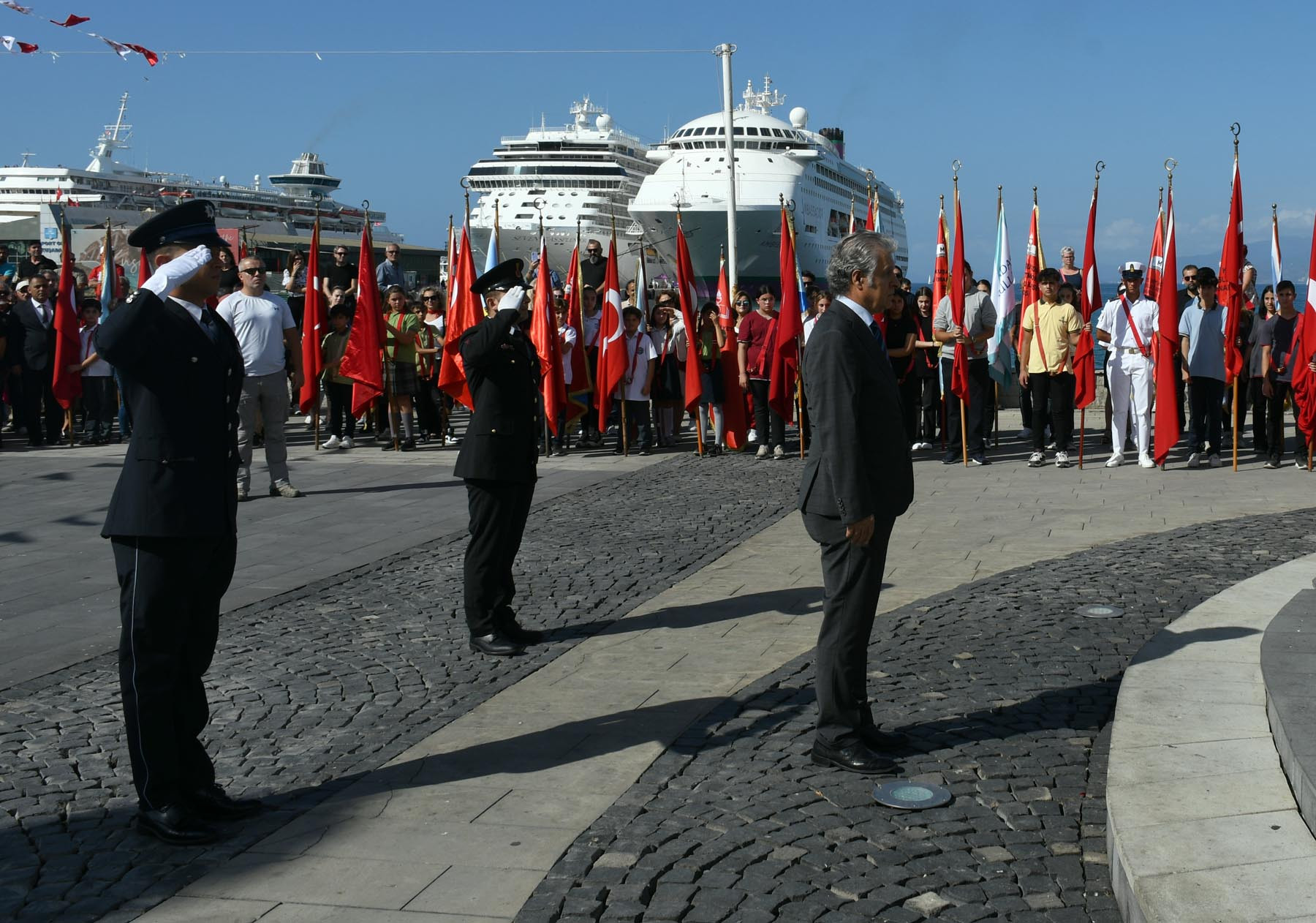 Kuşadası, Cumhuriyet'in ilanının 100. yıl dönümünü coşkuyla kutlama hazırlıklarına resmi çelenk sunma töreni ile başladı. Atatürk Meydanı'nda gerçekleşen bu önemli başlangıç, bölgenin önde gelen yetkilileri ve coşkulu bir kalabalık tarafından katıldı.