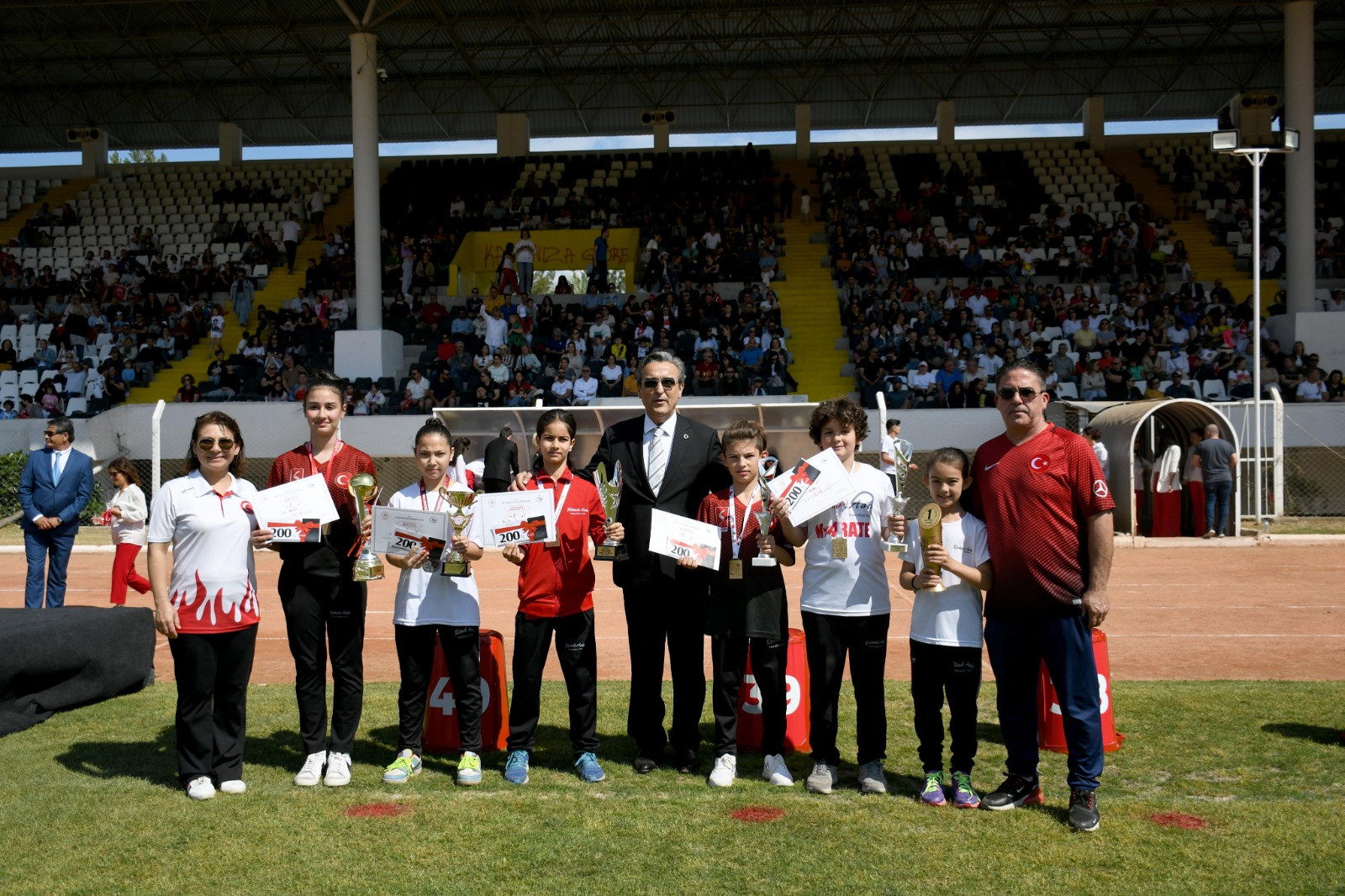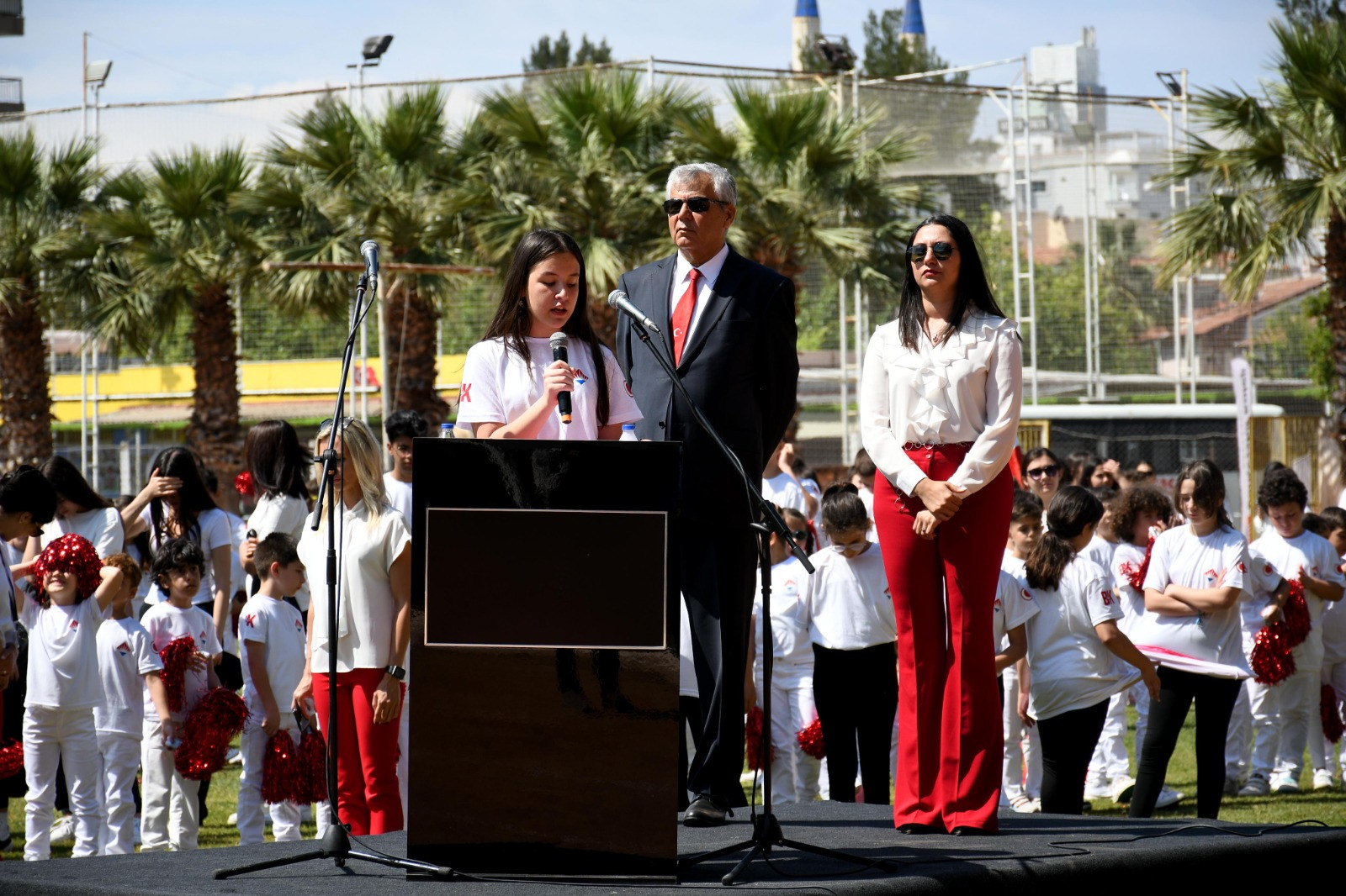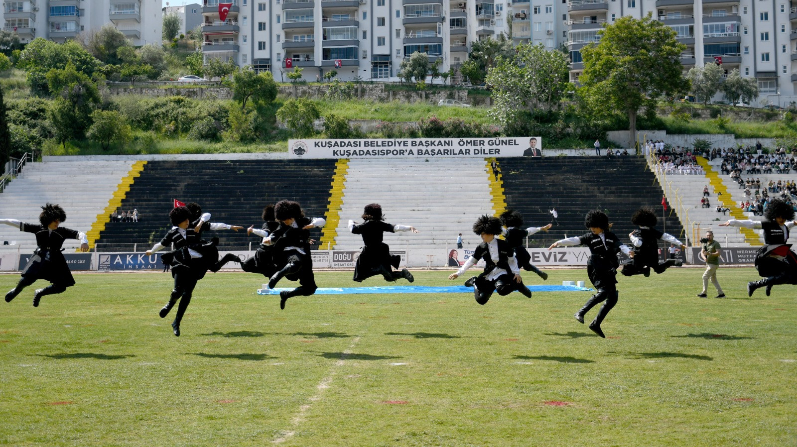 Özer Türk Stadı’ndaki programda, saygı duruşunda bulunulması ve İstiklal Marşı'nın okunmasının ardından Kuşadası Kaymakamı Sadettin Yücel ve Belediye Başkanı Ömer Günel, törene katılan öğrenciler ile vatandaşların bayramını kutladı. Günün anlam ve önemini belirten konuşmaların ardından dans ve jimnastik gösterileri sergilendi. Daha sonra Kuşadası Kaymakamı Sadettin Yücel, Belediye Başkanı Ömer Günel ve İlçe Milli Eğitim Müdürü İbrahim Ataman tarafından uluslararası turnuvalarda dereceye giren sporculara çeşitli hediyeler verildi. Kutlama programında lise öğrencileri tarafından okunan “Atatürk’ün Gençliğe Hitabesi ve Gençliğin Ata’ya Cevabı” Kuşadalılar tarafından ayakta alkışlandı.