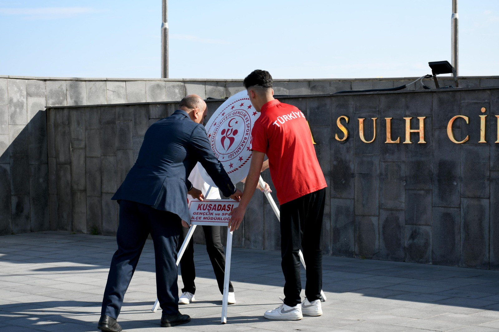 Kuşadası’nda 19 Mayıs Atatürk’ü Anma Gençlik ve Spor Bayramı kutlamaları, saat 09:00’da sahilde bulunan Atatürk Anıtı’na Gençlik ve Spor İlçe Müdür Vekili Ramazan Oğuz Verim tarafından çelenk sunulmasıyla başladı. Ardından Özer Türk Stadı’nda devam eden resmi törene Kuşadası Kaymakamı Sadettin Yücel, Kuşadası Belediye Başkanı Ömer Günel, Kuşadası İlçe Emniyet Müdürü Mehmet Ali Berksoy, Kuşadası İlçe Milli Eğitim Müdürü İbrahim Ataman, belediye başkan yardımcıları, belediye meclis üyeleri, kentte görev yapan idari ve mülki amirler, siyasi parti ve sivil toplum kuruluşlarının temsilcileri ile çok sayıda vatandaş katıldı.