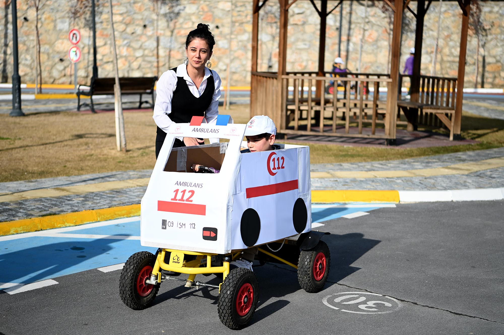 Trafik kurallarını kendileri için oluşturulan özel parkurda eğitim araçlarını kullanarak öğrenme fırsatı bulan öğrenciler, parkın hemen dışına getirilen acil yardım ambulansını da inceledi. Miniklere görevliler tarafından acil bir durumla karşılaştıklarında nasıl ambulans çağırmaları gerektiğinin yanı sıra hangi durumlarda 112 Acil Çağrı Merkezi numarasının aranacağı ve ambulansın çalışma sistemi gibi konularda bilgiler verildi.