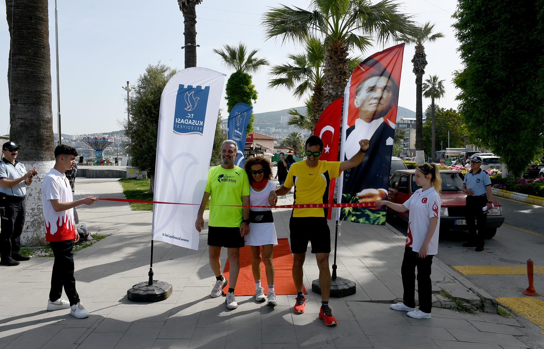 Kuşadası Belediyesi’nin katkılarıyla Kuşadası Kent Konseyi ve Gençlik ve Spor İlçe Müdürlüğü tarafından gerçekleştirilen kutlama programı, Atatürk Anıtı’na Gençlik ve Spor İlçe Müdür Vekili Ramazan Oğuz Verim tarafından çelenk sunulmasıyla başladı. Tören İstiklal Marşı ve saygı duruşu ile devam etti. Törene, Kuşadası Kent Konseyi Başkanı Mustafa Ünver, Gençlik ve Spor İlçe Müdürlüğü çalışanları ve sporcular da katıldı. Törenin ardından başlangıç ve bitiş noktası Atatürk Anıtı olan 19.19 kilometre uzunluğundaki koşuyu tamamlayan veteran atletlere çiçek verildi. Yüzücüler tarafından da denizde Atatürk posteri ve Türk bayrağı açıldı.