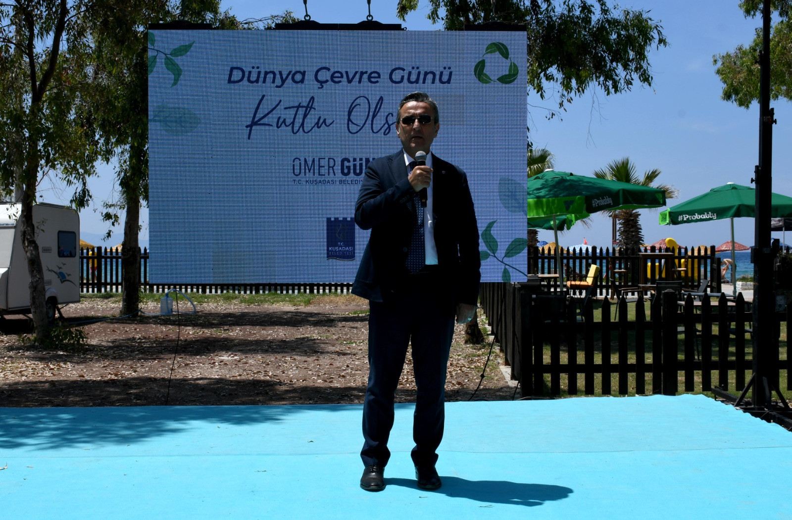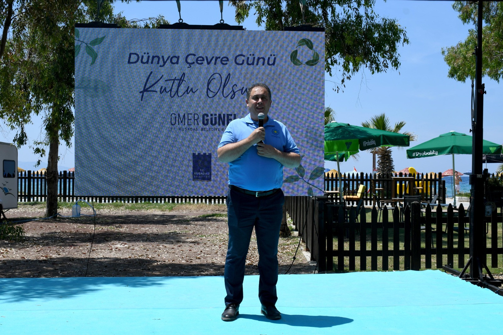 Kuşadası Kaymakamı Sadettin Yücel ise, “İnsan dünya genelinde maalesef denizleri ve atmosferi kirletip, ormanları yakıyor. Dünyayı yaşanmaz hale getirmek için elimizden geleni yapıyoruz. Bu nedenle çevrenin korunmasında yöneticilere önemli görevler düşüyor. Gelecek nesillere daha yaşanabilir bir dünya bırakmak zorundayız. Kuşadası’nda Mavi Bayrak dalgalanan 24 plajın bulunması bize gurur verdi. Emeği geçen herkese teşekkür ediyorum” diye konuştu.