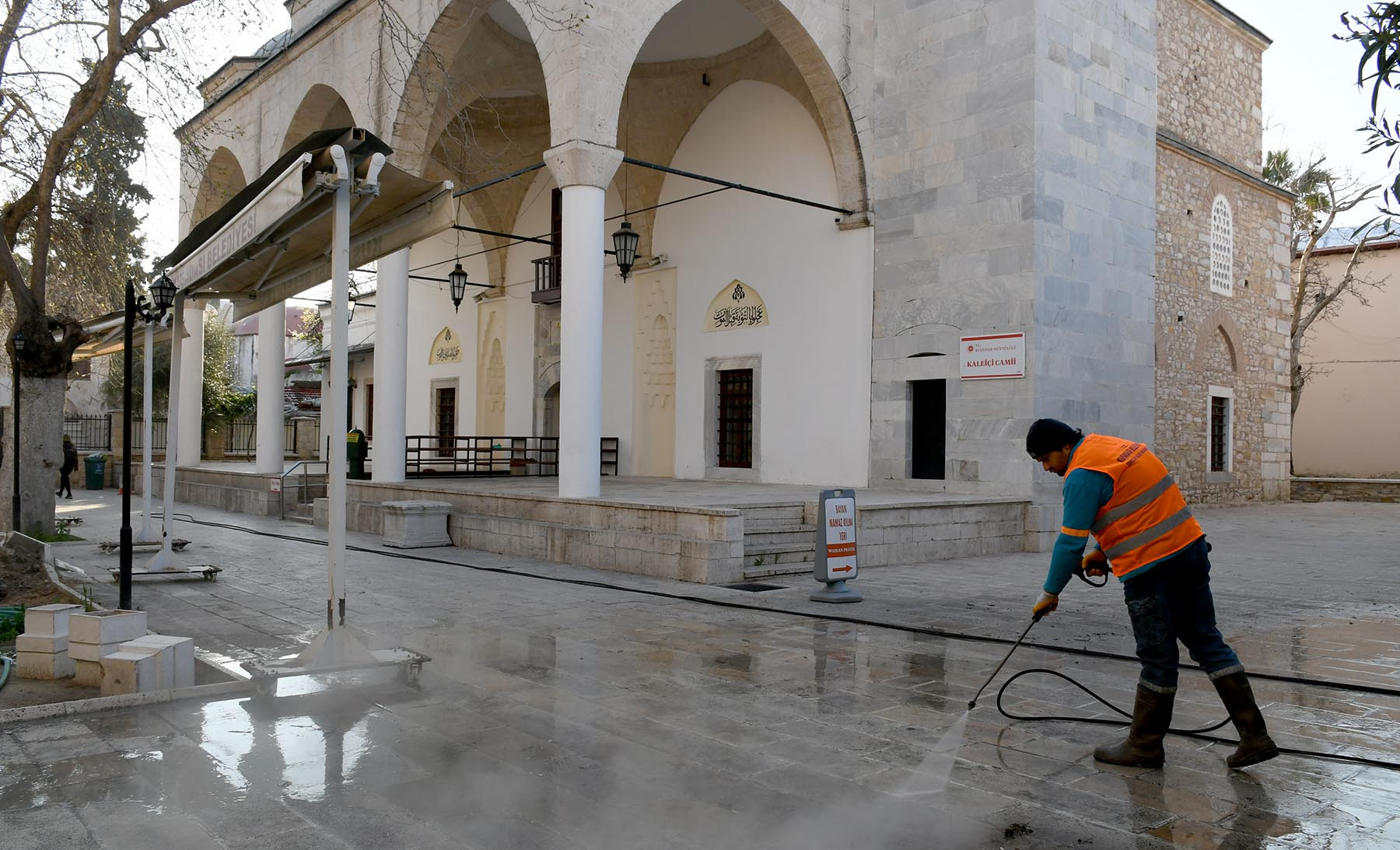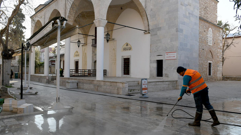 Kuşadası Belediyesi, Ramazan ayında kent sakinlerinin daha temiz, hijyenik ve sağlıklı bir ortamda teravih namazlarını ifa edebilmeleri için Kuşadası genelinde bulunan camilerde detaylı temizlik çalışması yaptı. Bu kapsamda Temizlik İşleri Müdürlüğü ekipleri tarafından kent merkezinden başlanarak tüm mahallelerdeki camilerin bahçe ve açık alanları 90 derecelik sıcak suyla yıkandı. Ardından ibadet alanları çevreye zarar vermeyen güçlendirilmiş bitkisel deterjanlarla dezenfekte edildi.
