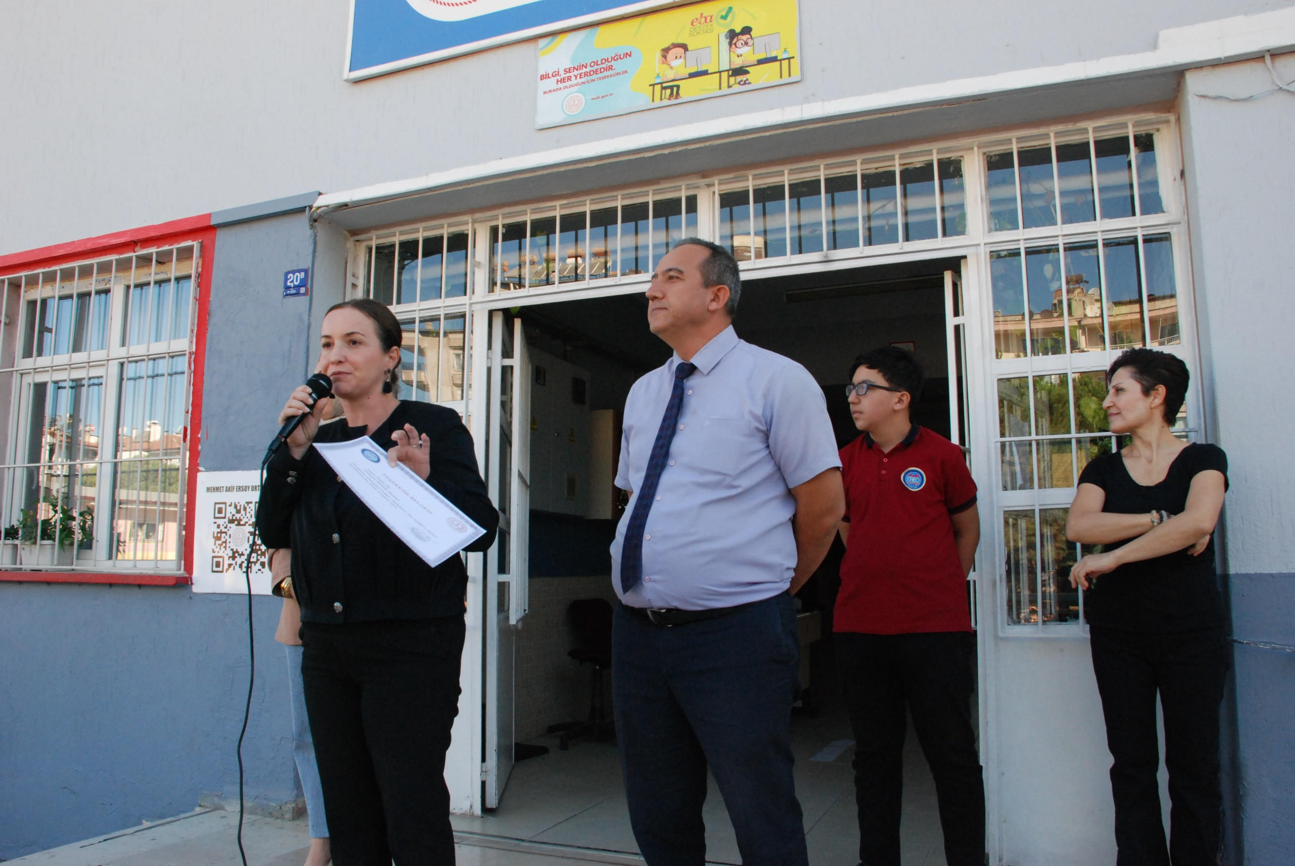 Yedi Eylül Mahallesi Muhtarı Özlem Öz, Mehmet Akif Ersoy Ortaokulu’ndaki bakım, onarımı, üstlenerek mahalleye örnek oldu. Düzenlenen programda, öğrenciler ve velilerin katılımıyla okul müdürü Yusuf Teker, Muhtar Özlem Öz’e teşekkür belgesi takdim etti.
