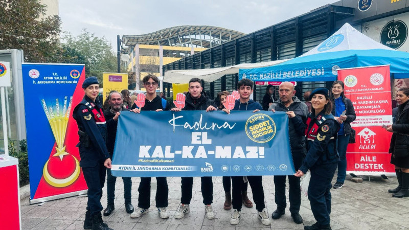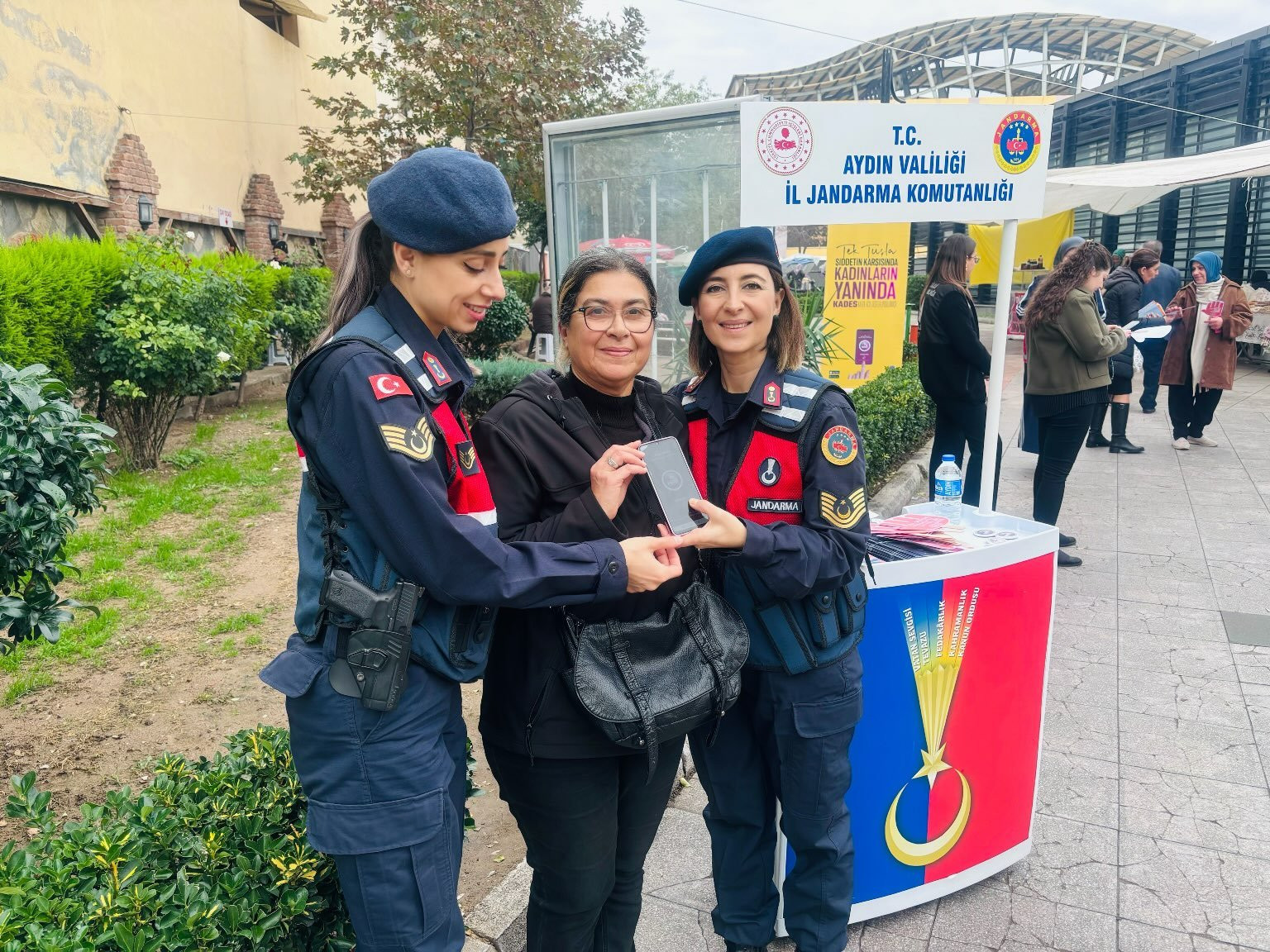 Aydın İl Jandarma Komutanlığı Aile İçi Şiddetle Mücadele ve Çocuk Kısım Amirliği, Nazilli İlçe Jandarma Komutanlığı personeli ile birlikte Nazilli Kent Meydanı’nda anlamlı bir etkinliğe imza attı. Kadın El Emeği Pazarı'nda açılan stantta, vatandaşlara KADES uygulaması tanıtılırken, “Kadına El Kalkamaz” mottosu ile bilgilendirme yapıldı.