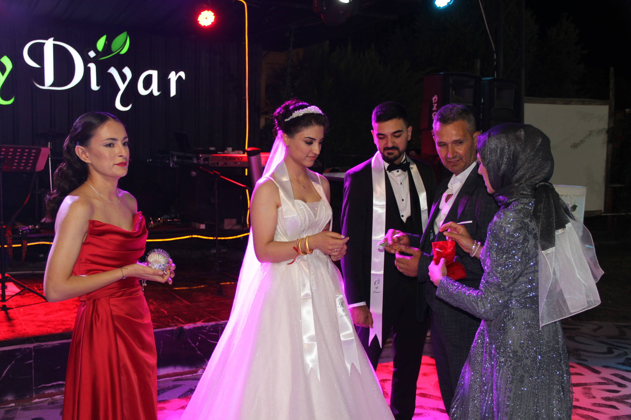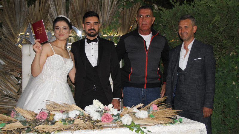 Özcan Atıf Şener ve Halise Şener çifti, nikah memurunun elinden aldıkları evlilik cüzdanıyla bir ömür boyu sürecek mutluluklarına ilk adımlarını attılar. Bu özel andan sonra düğün, nikah memuru ve şahitlerin huzurunda gerçekleşen bu unutulmaz anın kutlandığı bir kutlamayla taçlandı.