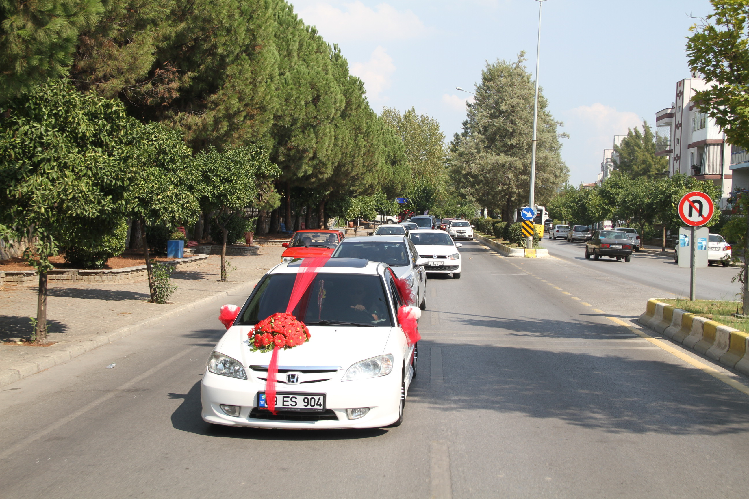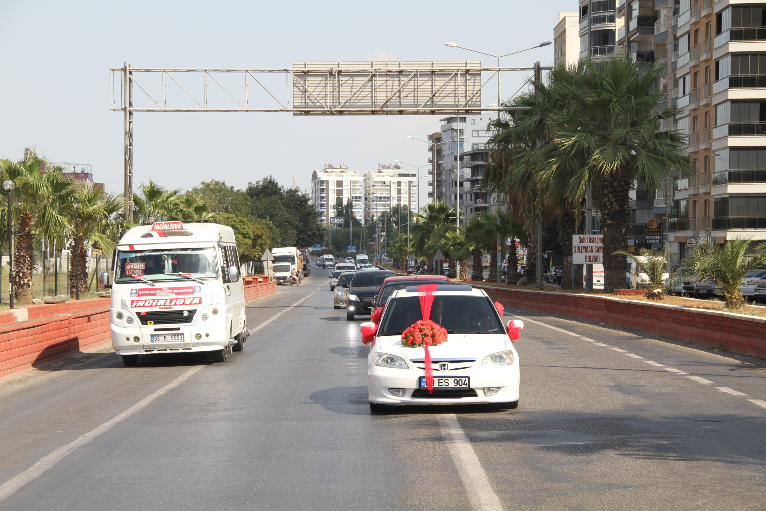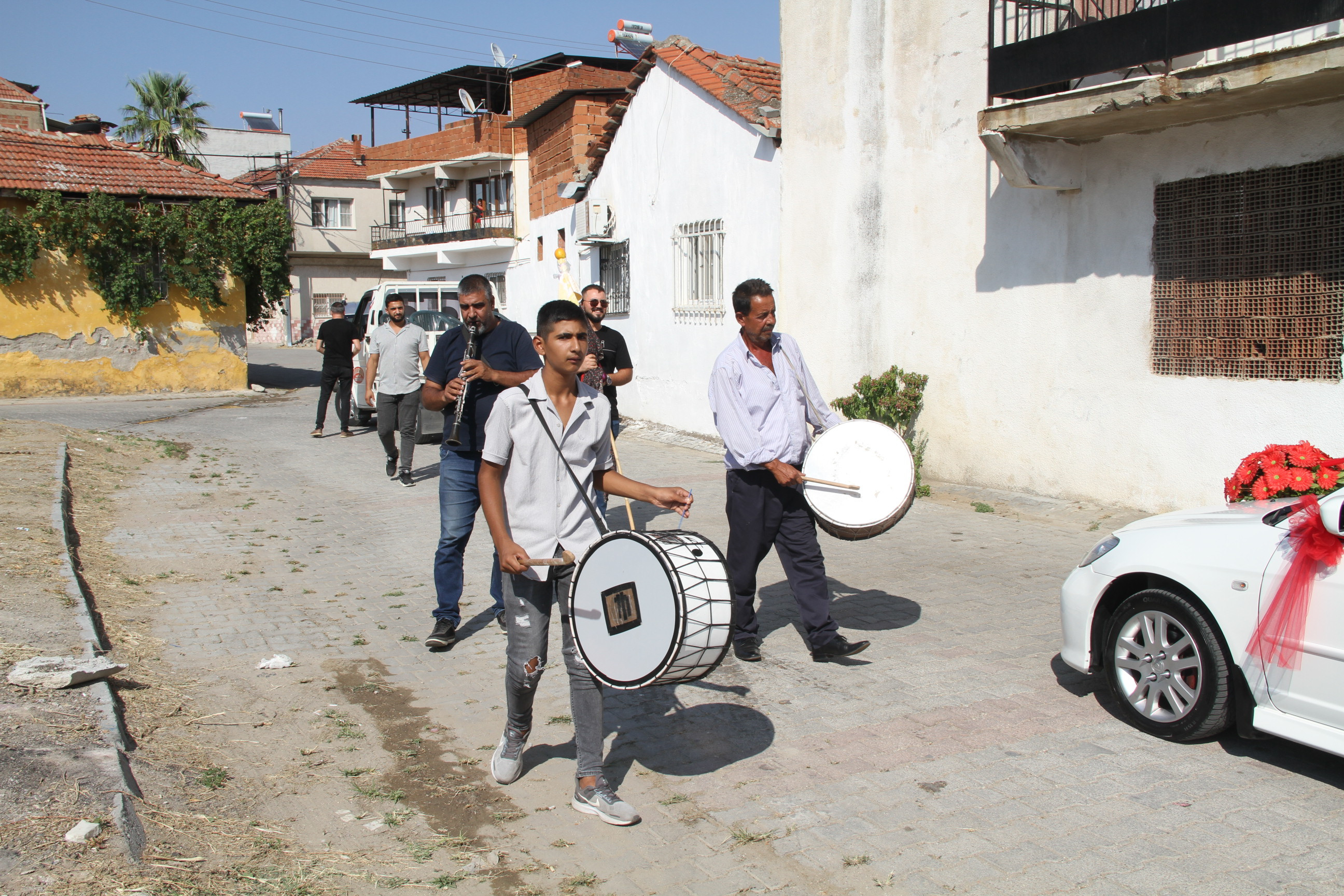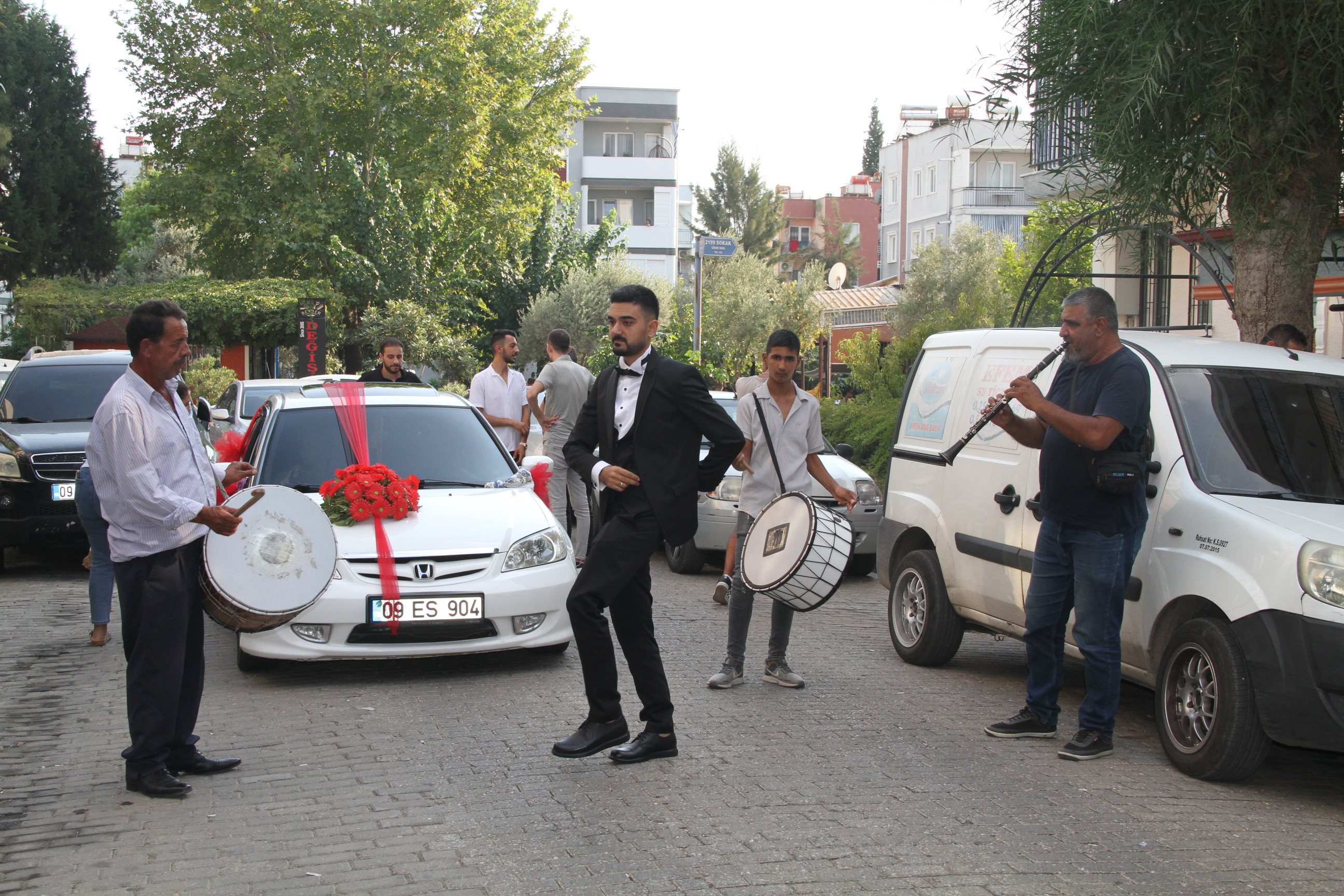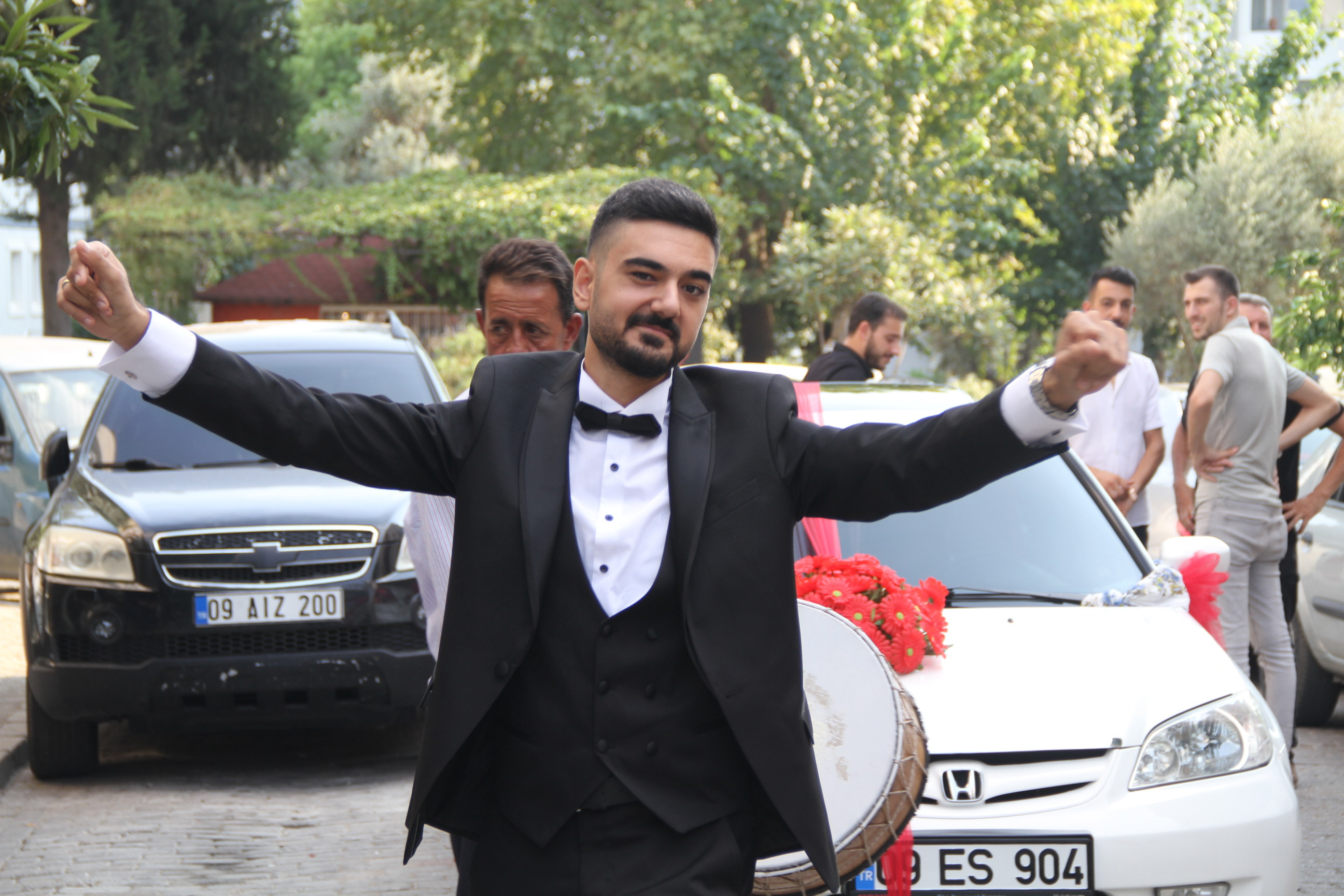 Evin önünde toplanan aile ve dostlar, dualarla dolu bir anı yaşamak için sabırsızlanıyorlardı. Damadın babası, geleneklere uygun bir şekilde, gururla çıkış yaparak evlatlarını yeni bir hayata uğurladı. Bu anın coşkusunu yaşamak için Aydın Efeleri'nden birçok seven, konvoylar eşliğinde Ortaklar'a doğru yola çıktılar. Bu özel günü unutulmaz kılmak için ellerinde Türk bayrakları ve tezahüratlarla dolu coşkulu bir atmosfer vardı.
