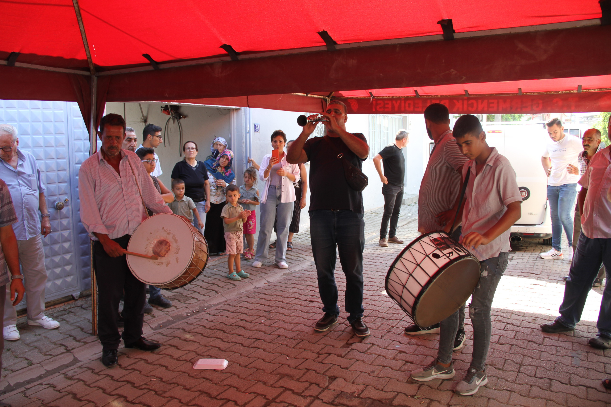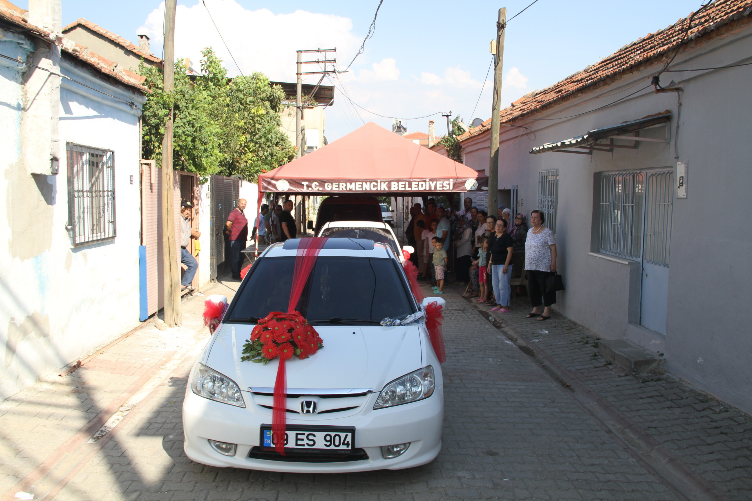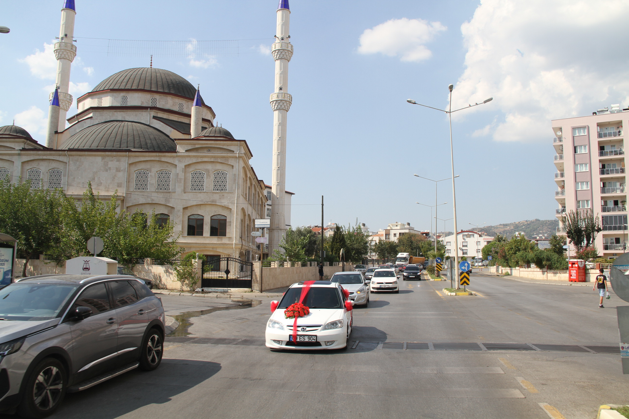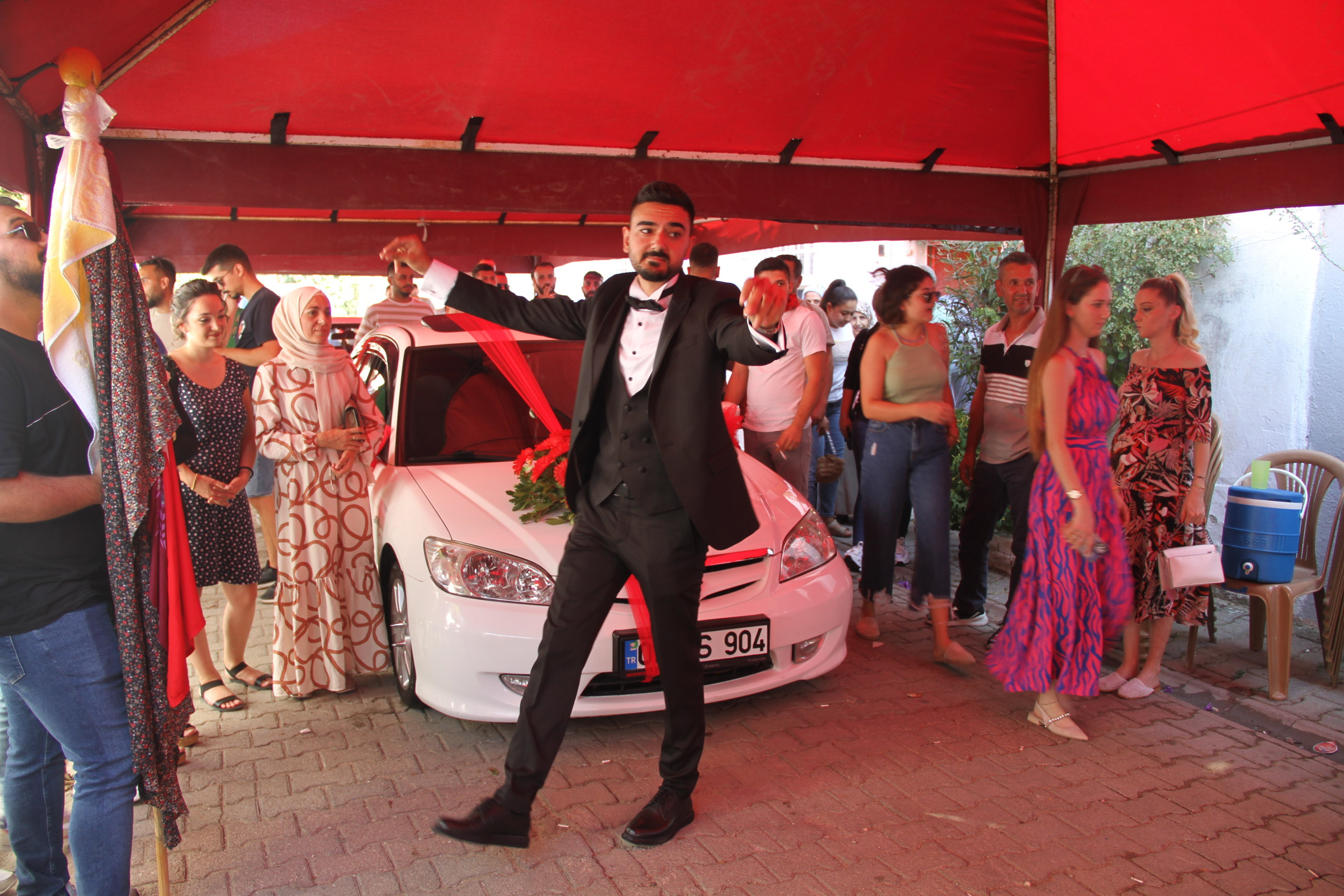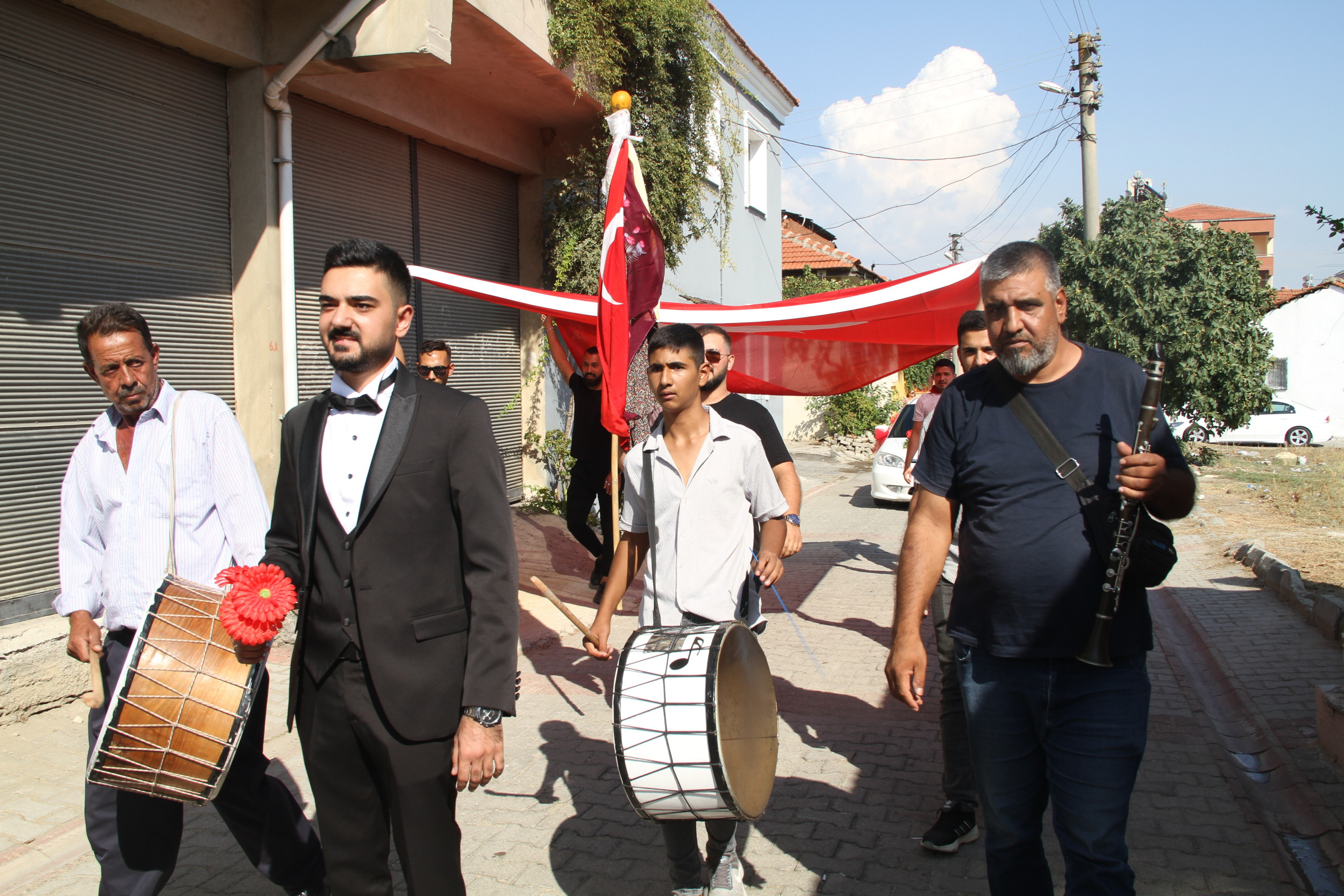 Evin önünde toplanan aile ve dostlar, dualarla dolu bir anı yaşamak için sabırsızlanıyorlardı. Damadın babası, geleneklere uygun bir şekilde, gururla çıkış yaparak evlatlarını yeni bir hayata uğurladı. Bu anın coşkusunu yaşamak için Aydın Efeleri'nden birçok seven, konvoylar eşliğinde Ortaklar'a doğru yola çıktılar. Bu özel günü unutulmaz kılmak için ellerinde Türk bayrakları ve tezahüratlarla dolu coşkulu bir atmosfer vardı.