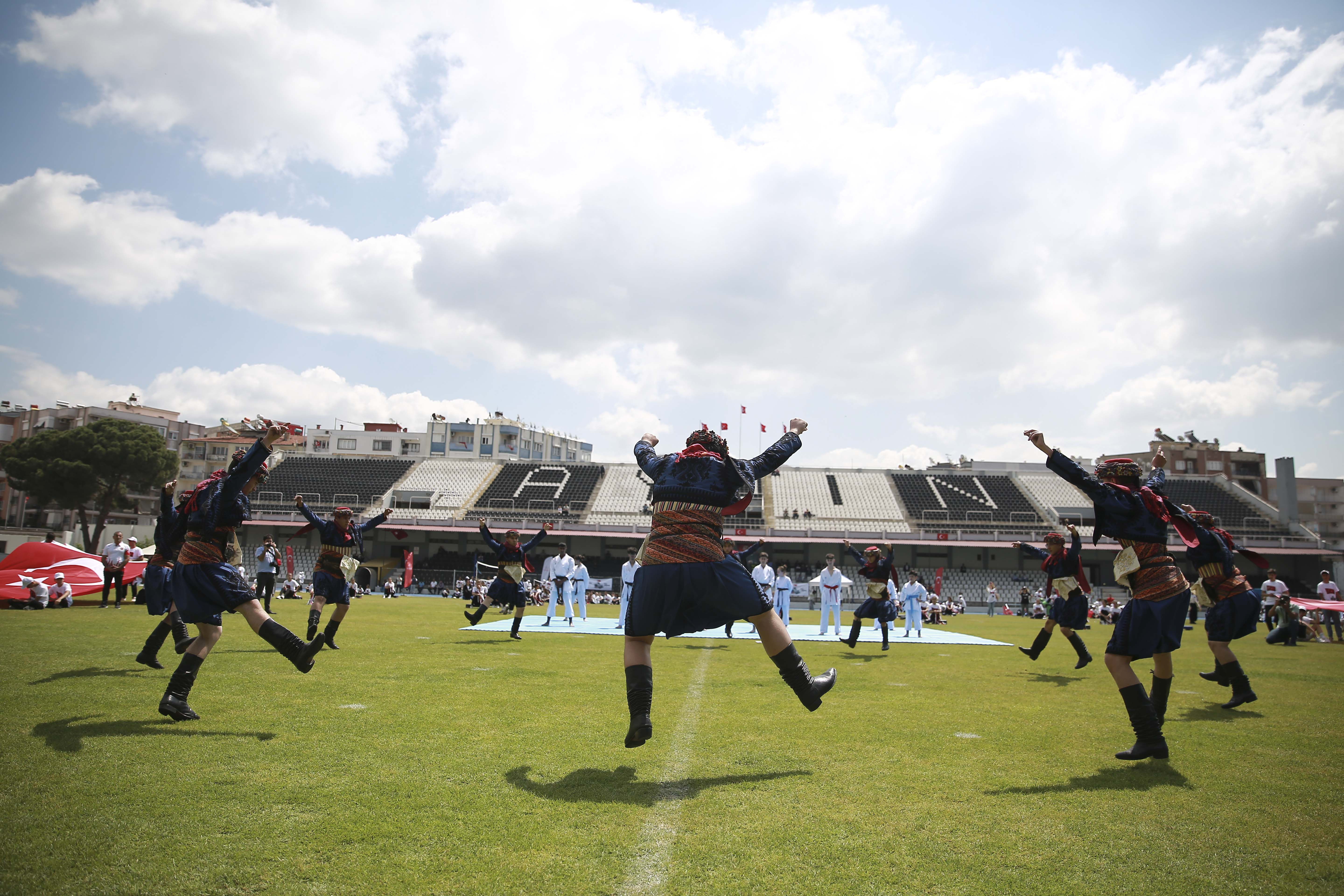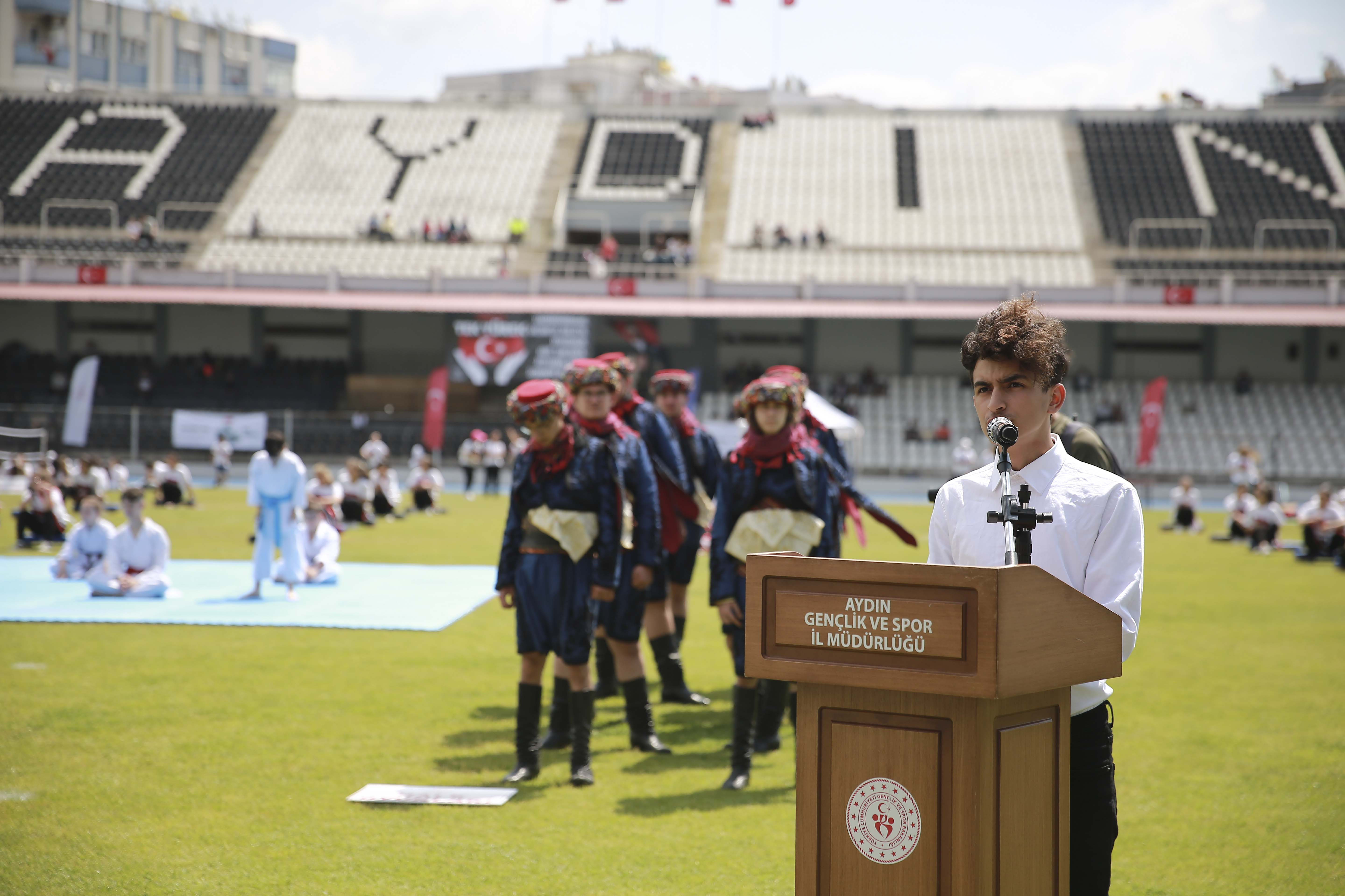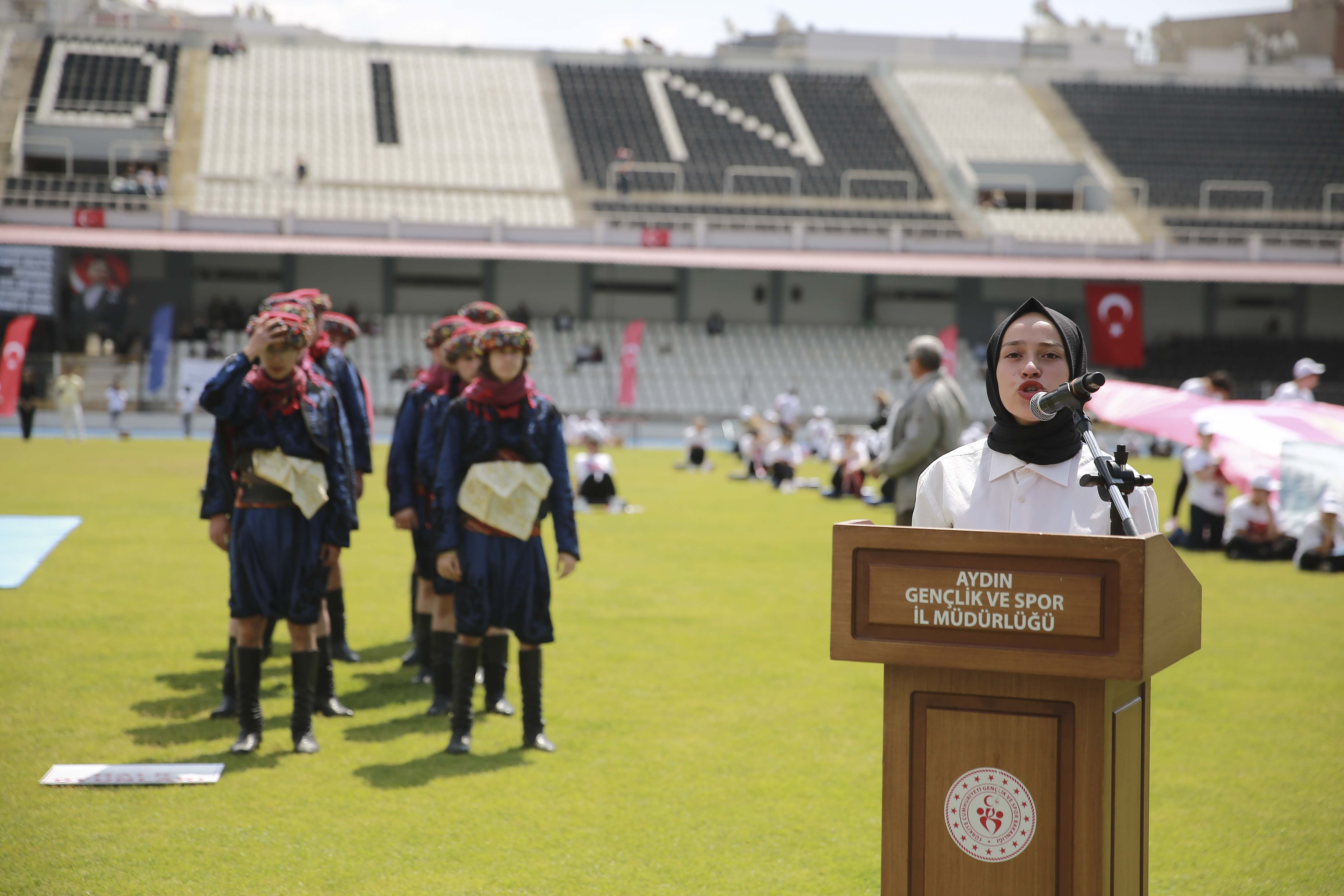 Aydın Valiliği önündeki Atatürk anıtına çelenk sunma töreni ile başlayan programda, Saygı Duruşu ve İstiklal Marşı'nın okunmasını ardından Adnan Menderes Stadyumu'nda Ata'ya Saygı Gençlik Yürüyüşü gerçekleştirildi.