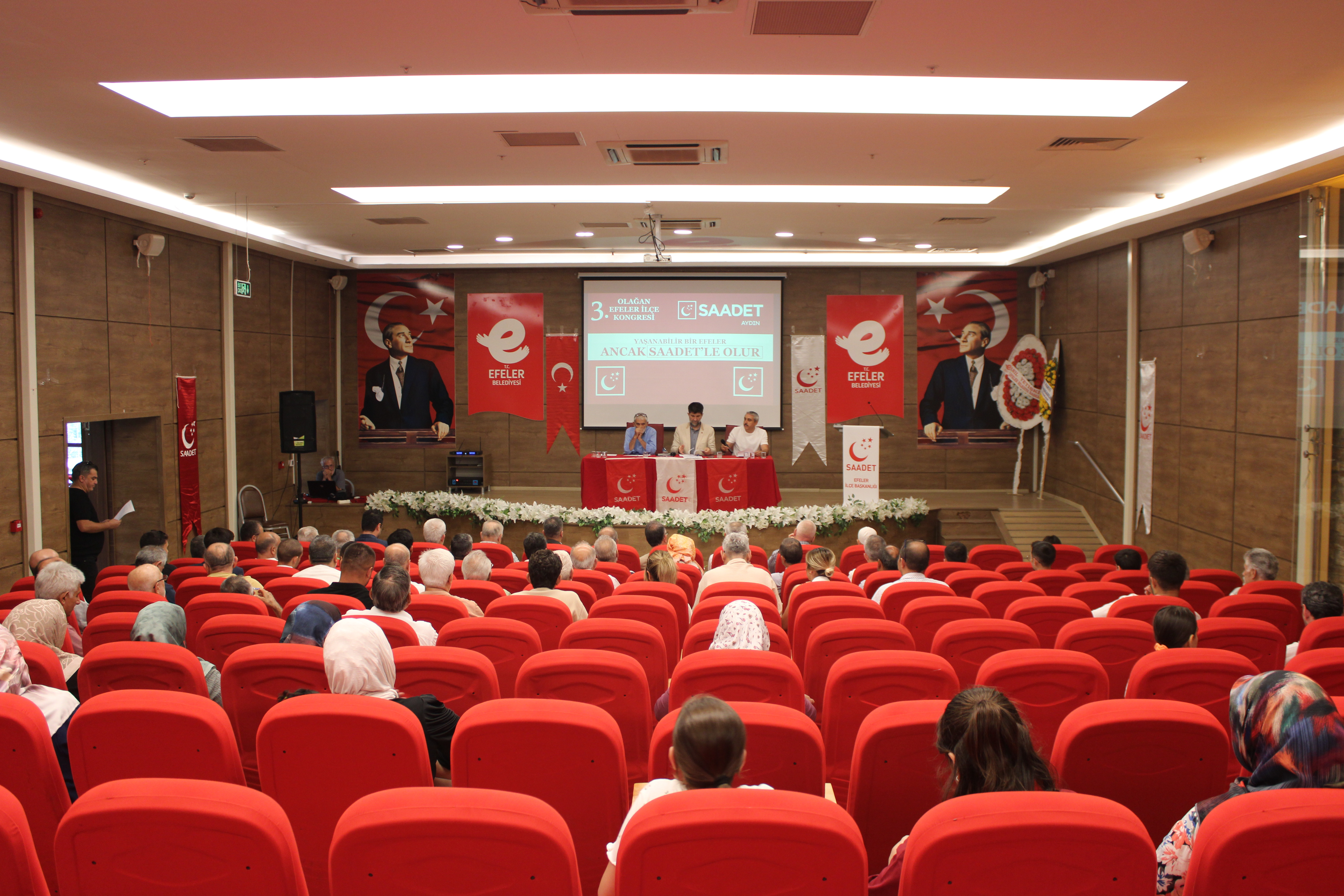 Saadet Partisi Efeler İlçe 3. Olağan Kongresi, Antalya Milletvekili Şerafettin Kılıç’ın katılımıyla gerçekleşti. Tek listeyle gidilen seçimde Yunus Doğan, yeni ilçe başkanı oldu.