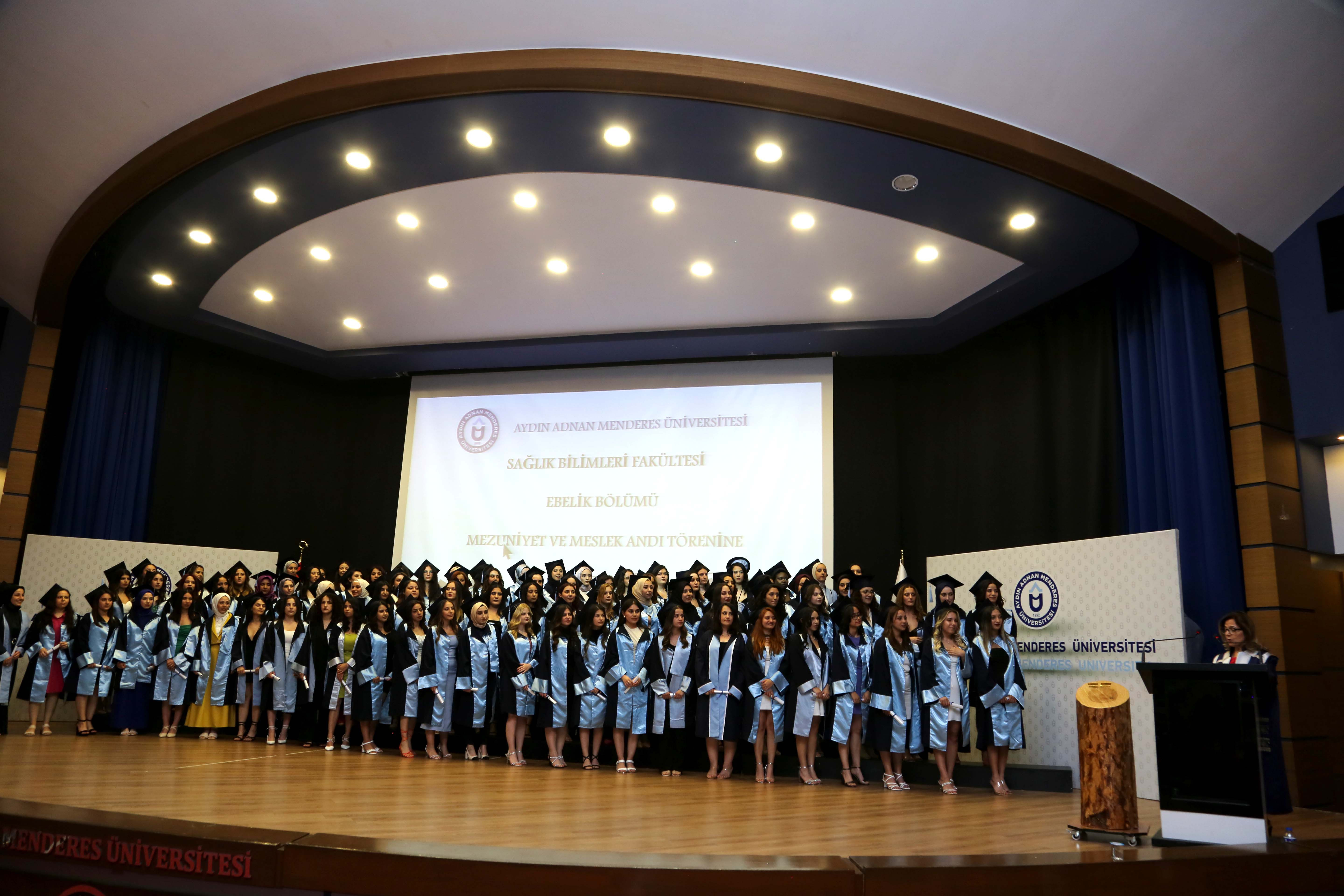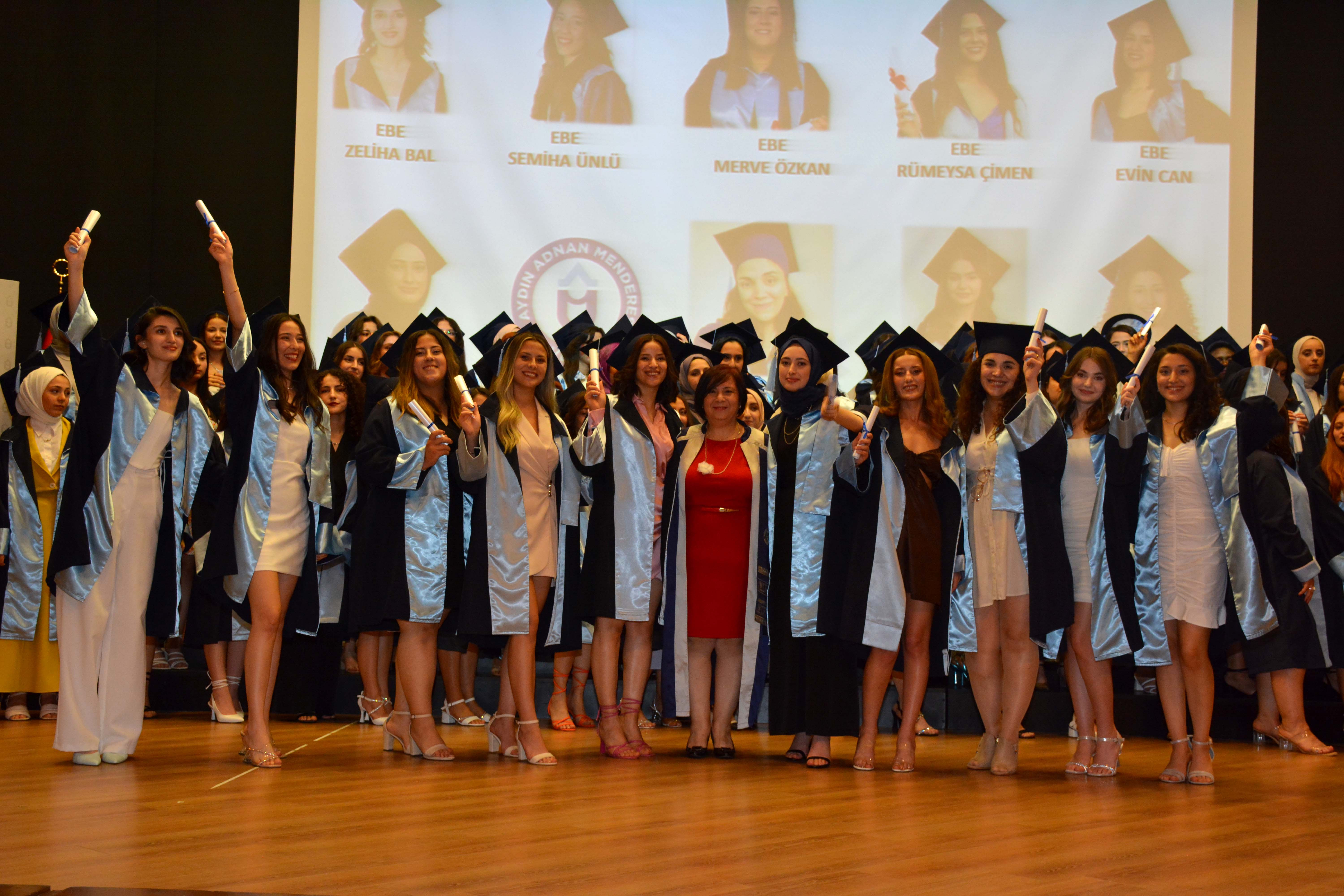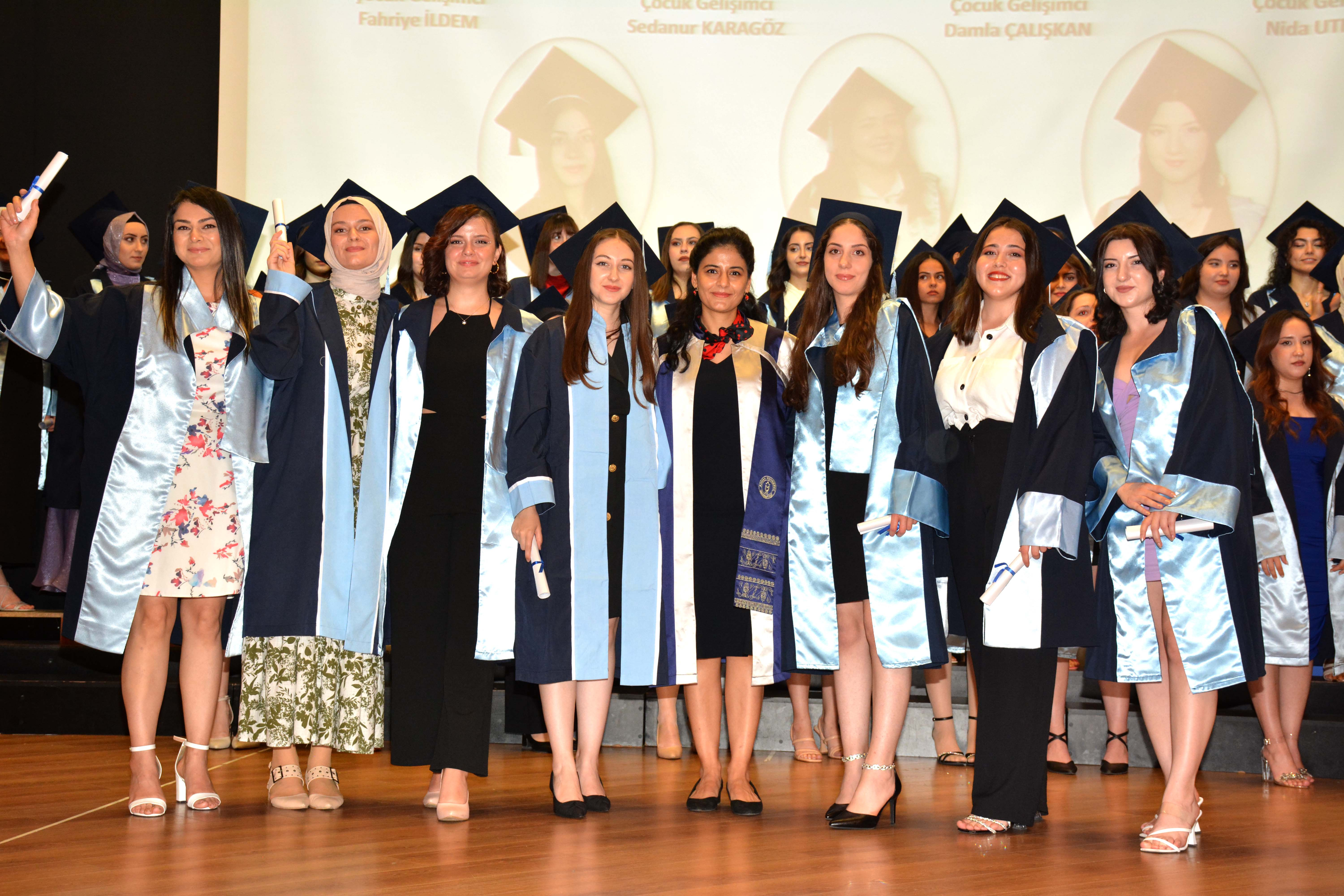 Çocuk Gelişim Andı, Ebelik Andı, Beslenme ve Diyetetik Andının okunmasının ardından mezun öğrencilerin keplerini atması ile tören sona erdi.