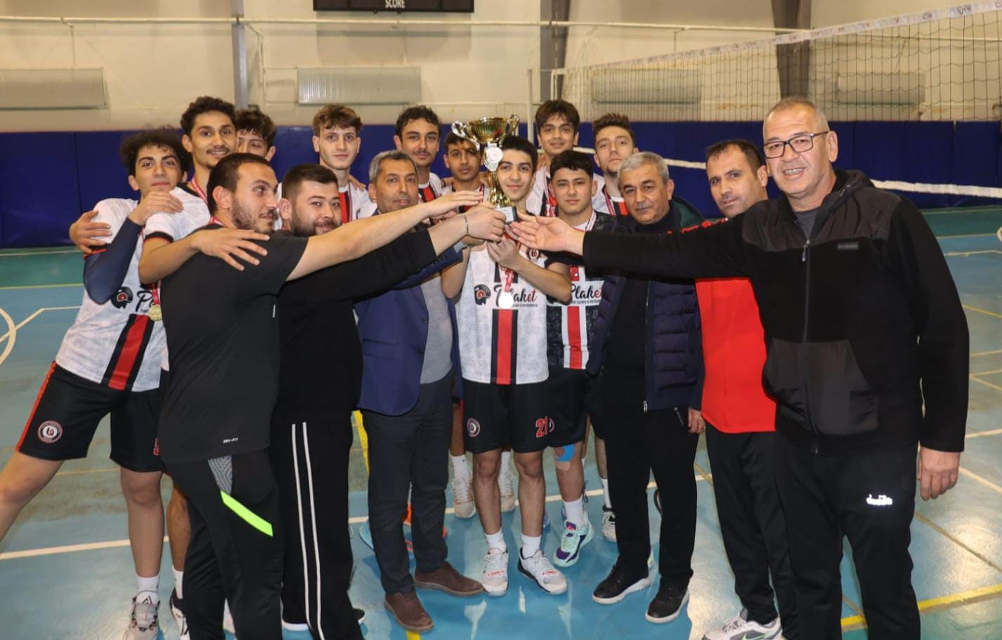 Şampiyon voleybolcular kupalarını Başkan Kaplan’ın elinden aldı.