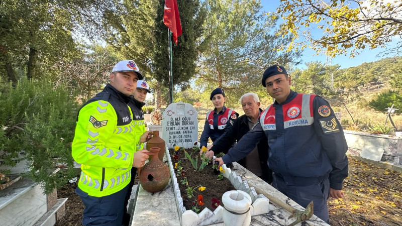 Aydın İl Jandarma Komutanlığı, 14 Temmuz 1995'te Mardin'de şehit düşen Jandarma Komando Er Erkan Duran’ın Çine ilçesindeki Ailesi başta olmak üzere şehidin mezarının başında dualar edildi.