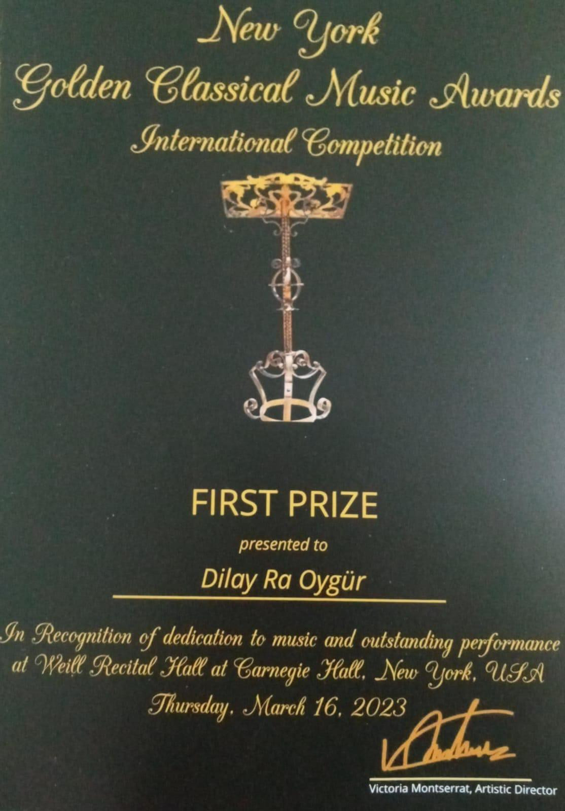 Üniversitemiz Devlet Konservatuvarı Müzik ve Sahne Sanatları Lisesi Yaylı Çalgılar Ana Sanat Dalı 2. Sınıf Öğrencisi Dilay Ra Oygür, 16 Mart 2023 tarihinde gerçekleştirilen NY Golden Classical Music Awards Ödül Töreninde, viyolonsel performansıyla birincilik ödülünü kazandı.