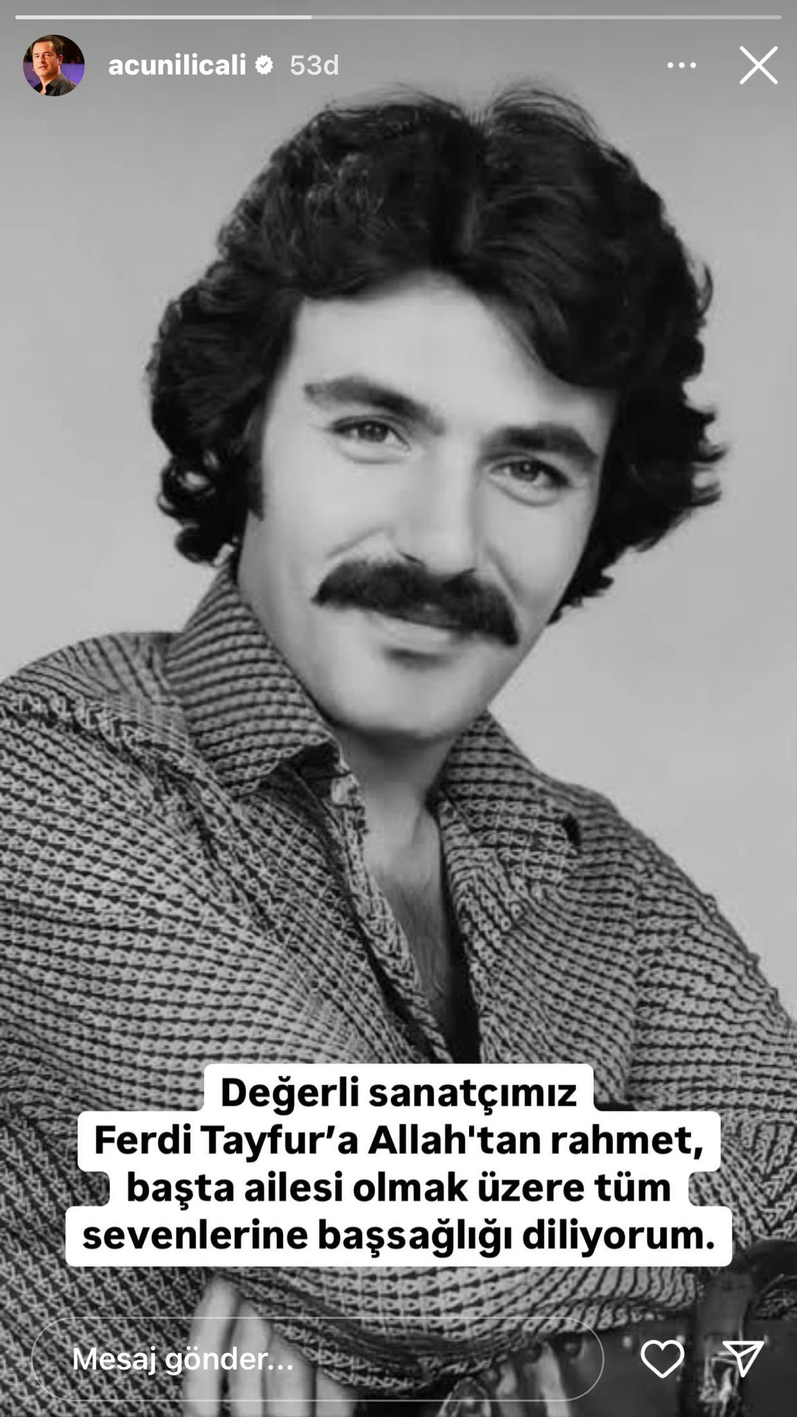 Ferdi Tayfur'un vefatının ardından birçok sanatçının başsağlığı mesajları sosyal medya hesaplarından paylaşıldı. Ünlü sanatçı İbrahim Tatlıses, "Türkiye büyük bir üzüntü içinde. Kendisine ve ailesine sabırlar diliyorum," dedi.