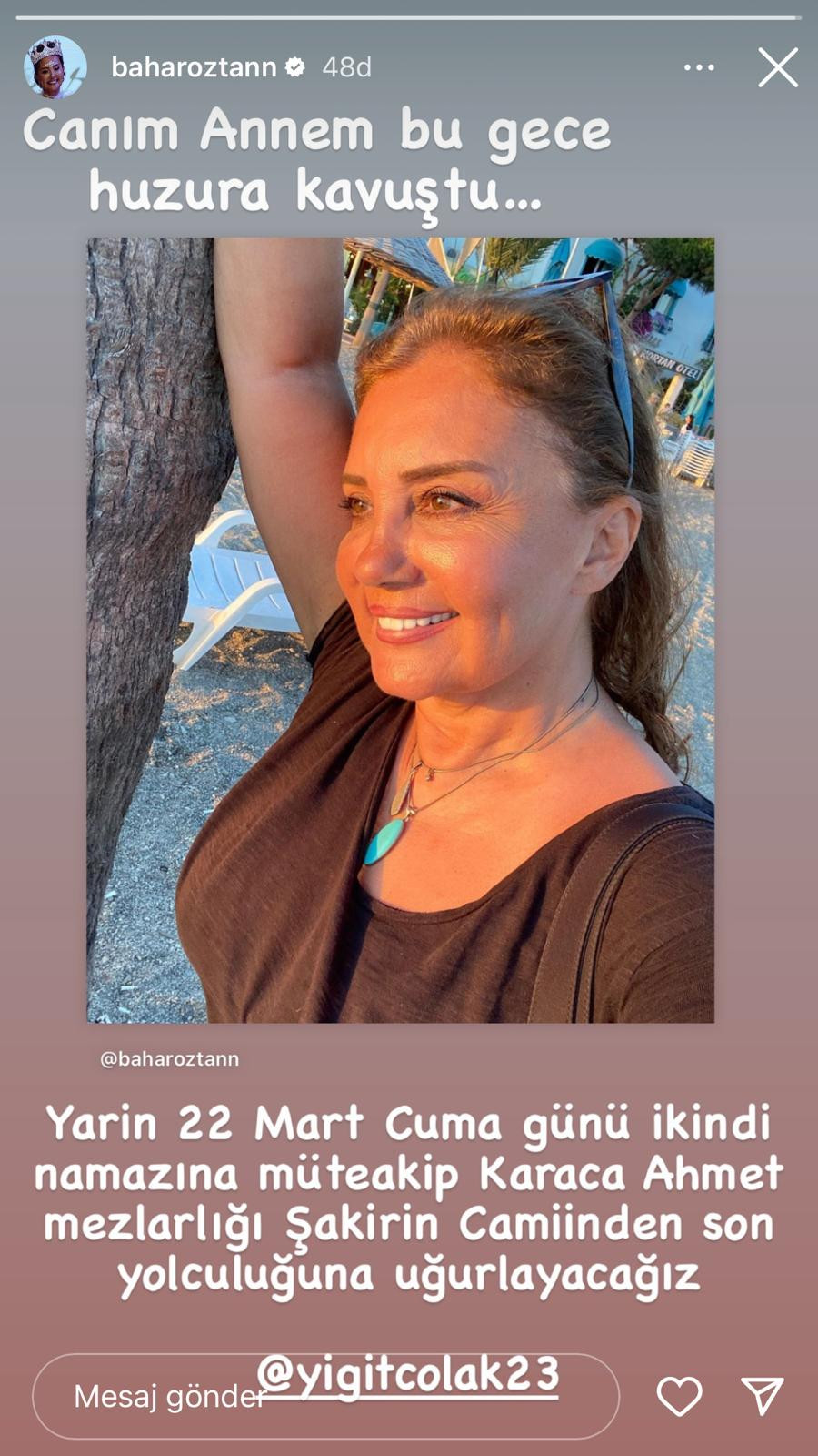 Oyuncunun Instagram hesabından yapılan duyuruya göre, yarın ikindi namazını müteakip Şakirin Camii'nde kılınacak cenaze namazıyla Bahar Öztan, sevenlerinin dualarıyla ebediyete uğurlanacak. Karacaahmet Mezarlığı'na defnedilecek olan Öztan'ın cenaze törenine sanat camiasından birçok ismin katılması bekleniyor.