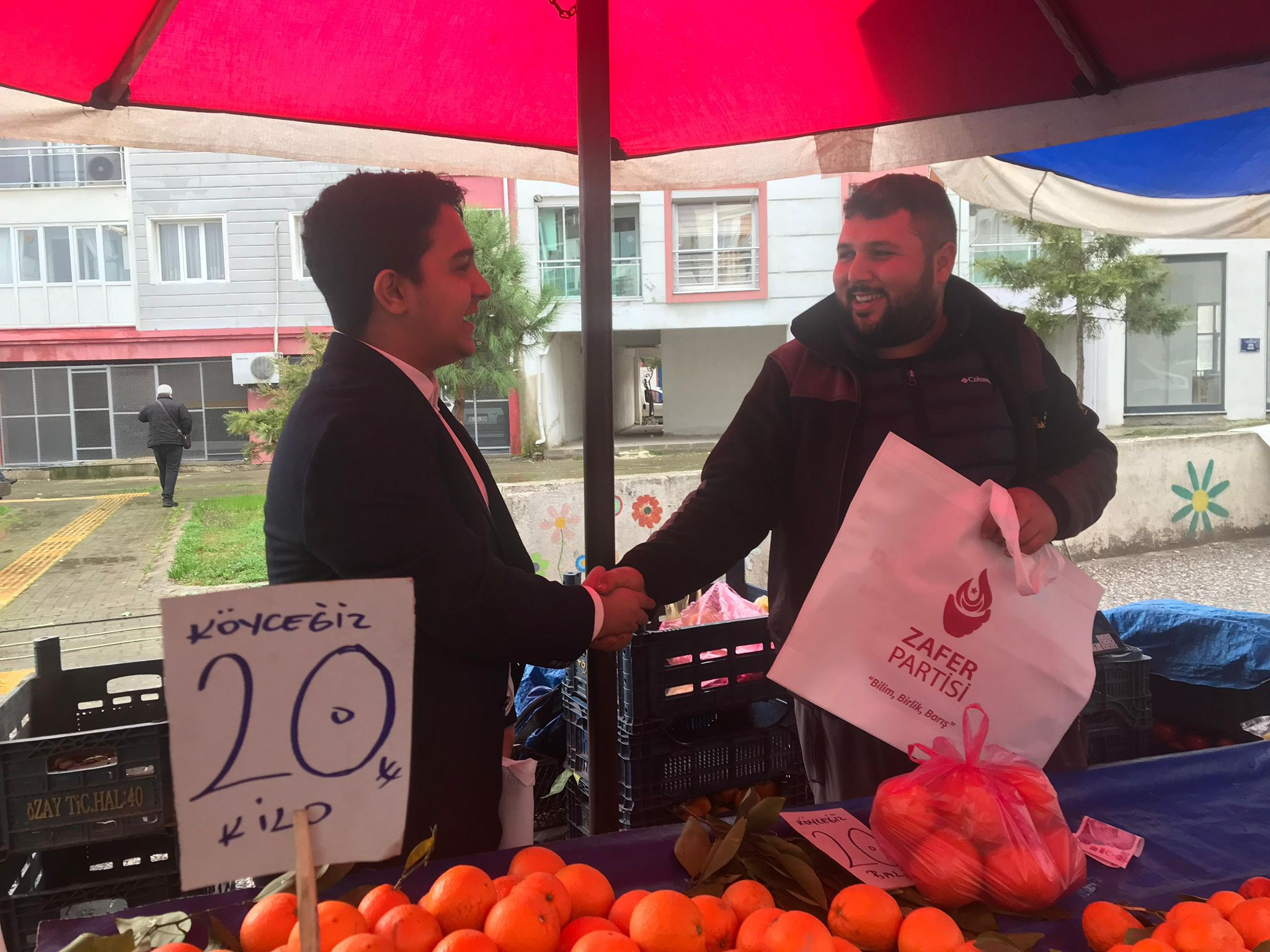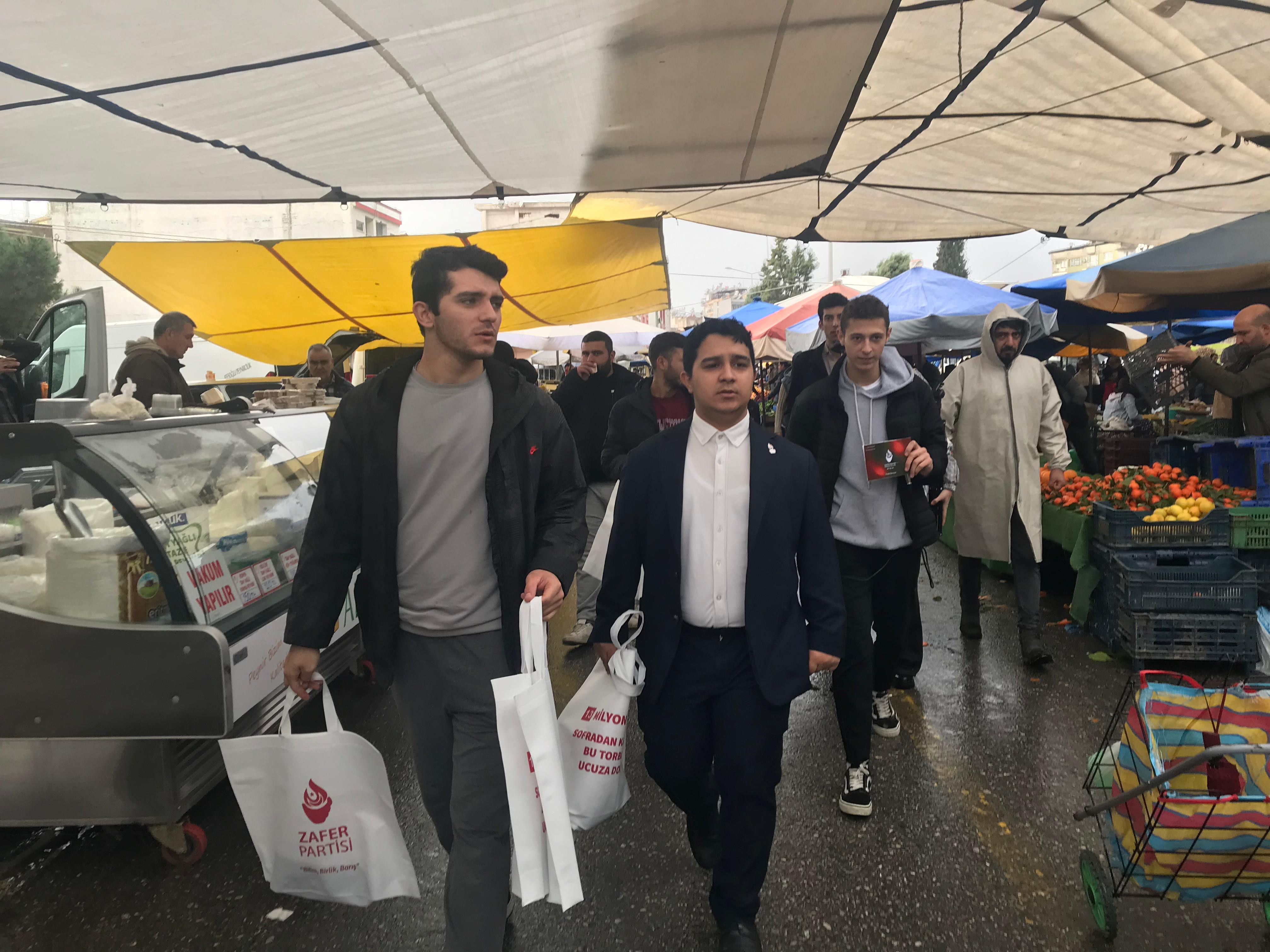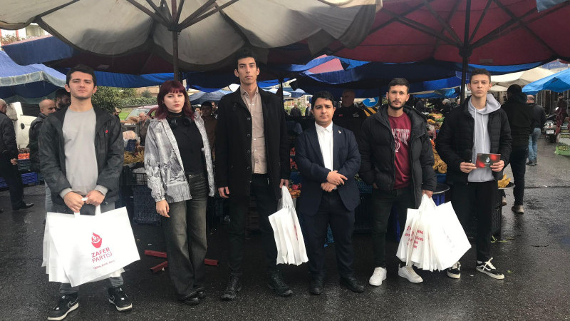 Zafer Partisi Aydın İl Gençlik Kolları Başkanı Emre Lalecioğlu ve Gençlik kolları üyeleri, Efeler Semt Pazarı'nda pazarcı esnafı ve vatandaşlarla iletişim kurarak, ekonomik sorunlara dikkat çekti. Ziyaret sırasında, gençlik kolları üyeleri, vatandaşlara ekonomik durumlarını sorarken, Zafer Partisi’nin “13 milyon sığınmacı sofradan kalktığında, bu torba daha ucuza dolacak” mesajını taşıyan poşetler de dağıttılar. Zafer Partisi Soruyor, başlığı altında sorular yönelterek, halkın düşüncelerini aldılar.