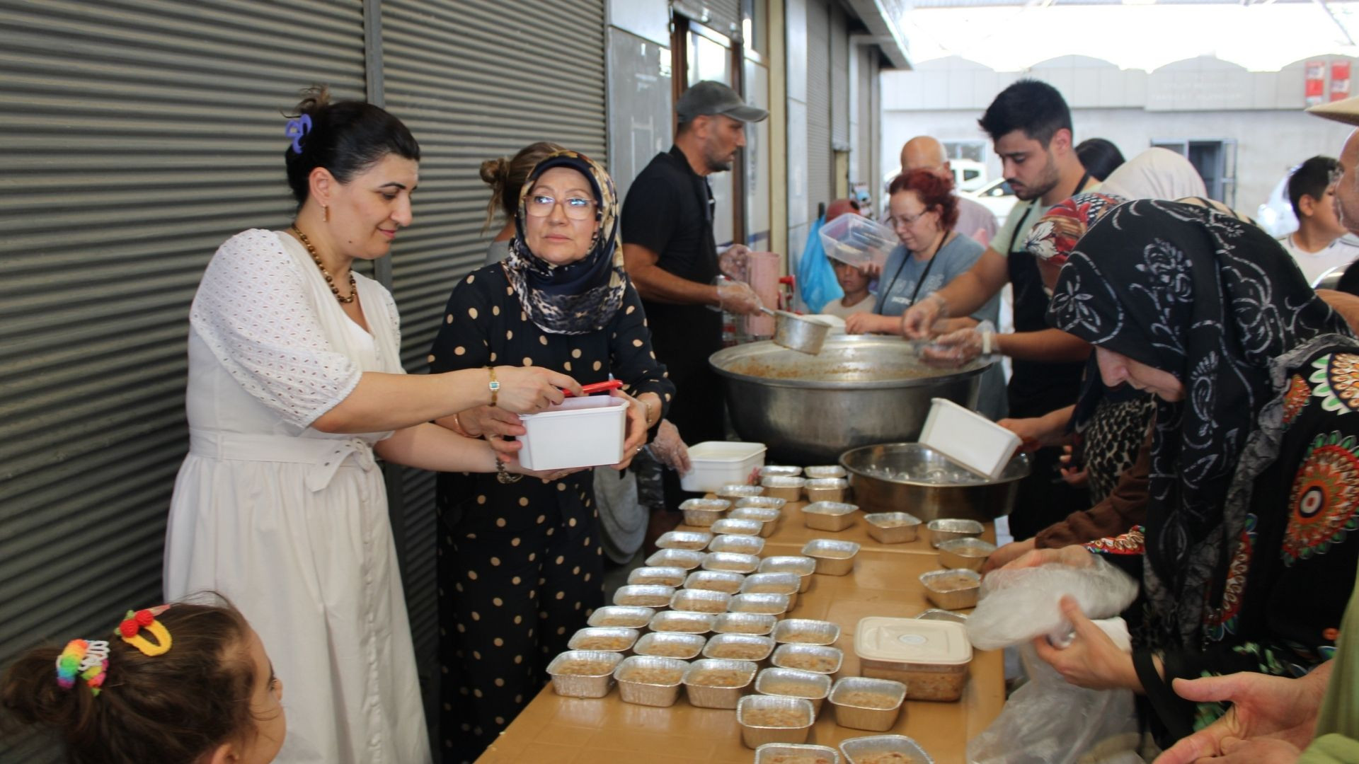 Fatih Mahallesi kapalı pazar yerinde gerçekleştirilen hayır etkinliği, Kur’an-ı Kerim tilaveti ve dualarla başladı. Yaklaşık 500 kişilik aşure, mahalleli kadınların el birliği ve imece usulüyle titizlikle hazırlanarak vatandaşlara ikram edildi.
