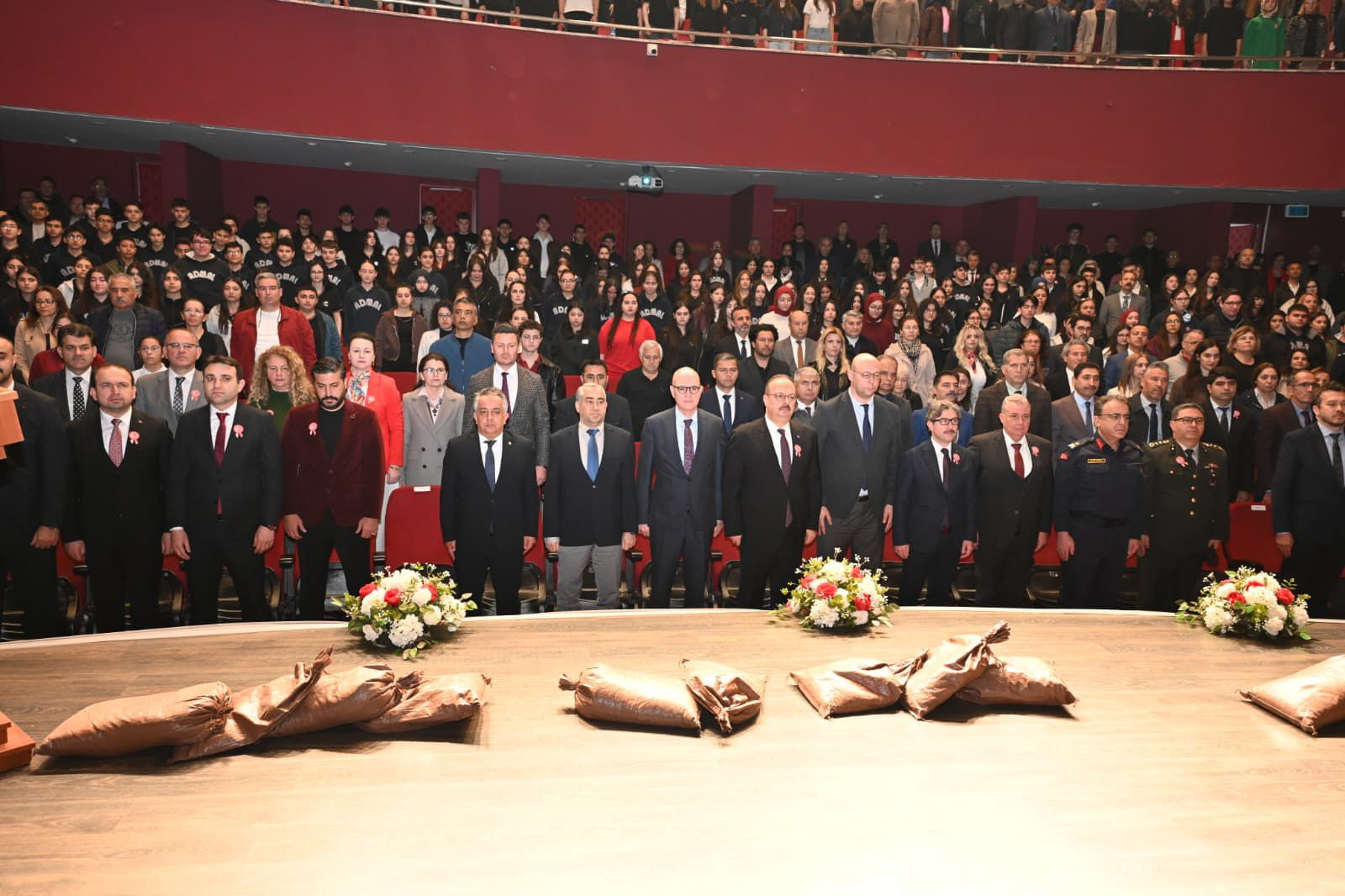 Anma programı, Mehmet Akif Ersoy’un kaleme aldığı İstiklal Marşı’nın okunmasıyla başladı. Milli Mücadele ruhunu yansıtan İstiklal Marşı’nın 1921 yılında Türkiye Büyük Millet Meclisi tarafından kabul edildiği hatırlatılırken, Mehmet Akif Ersoy’un “Allah bu millete bir daha İstiklal Marşı yazdırmasın” sözü bir kez daha vurgulandı.