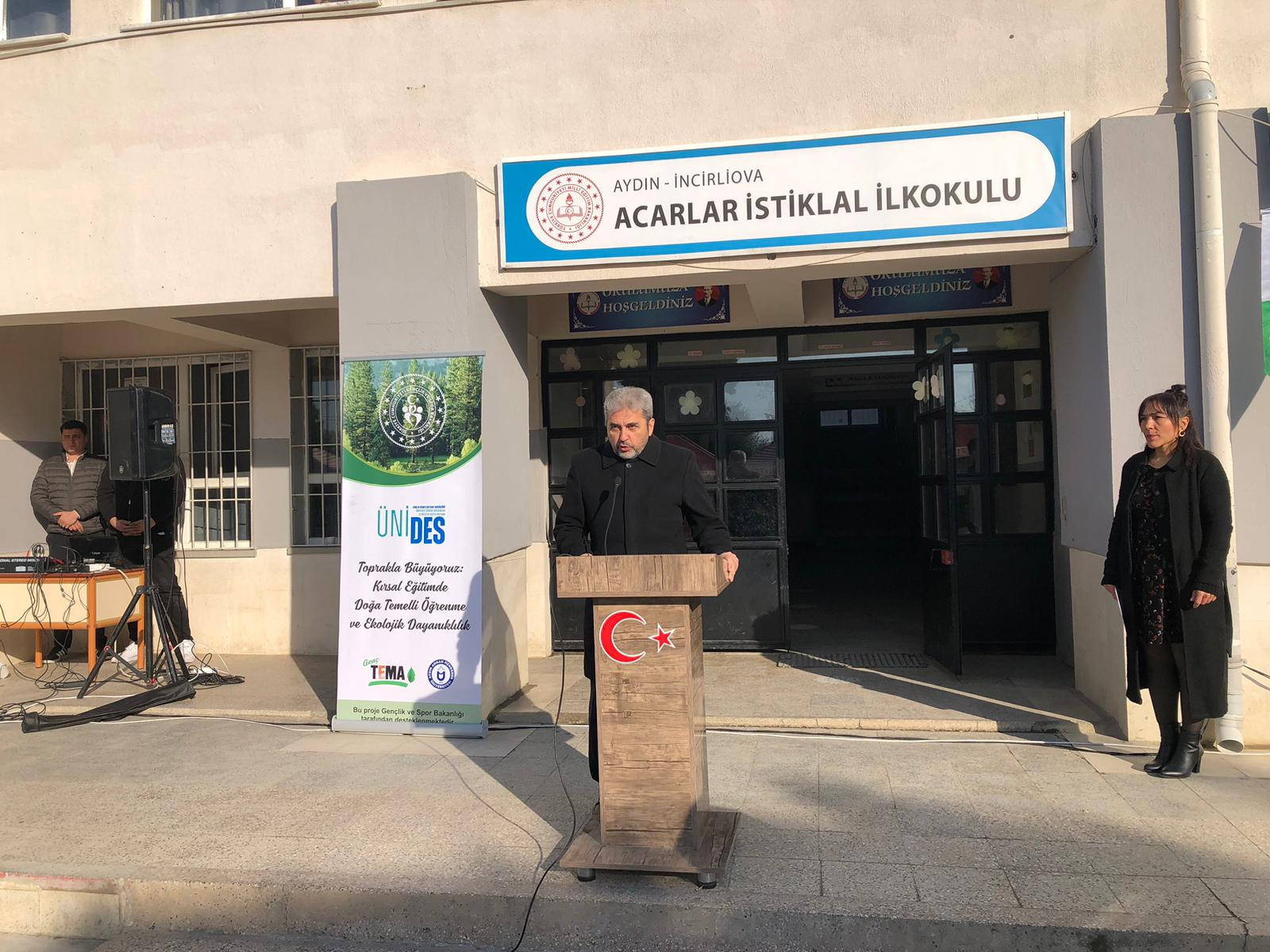 Gençlik ve Spor Bakanlığı’nın ÜNİDES Programı kapsamında desteklenen “Toprakla Büyüyoruz” projesinin ilk uygulaması, Aydın’ın İncirliova ilçesindeki Acarlar İstiklal İlkokulu’nda gerçekleştirildi.
