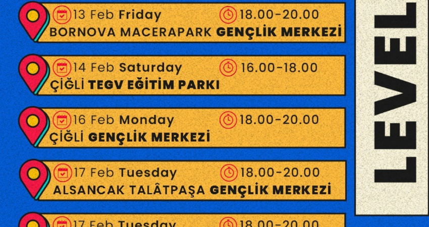 Şubat ayı boyunca etkinlikler Alsancak, Bornova, Buca ve Çiğli’deki Genç İzmir merkezlerinde gerçekleştirilecek.