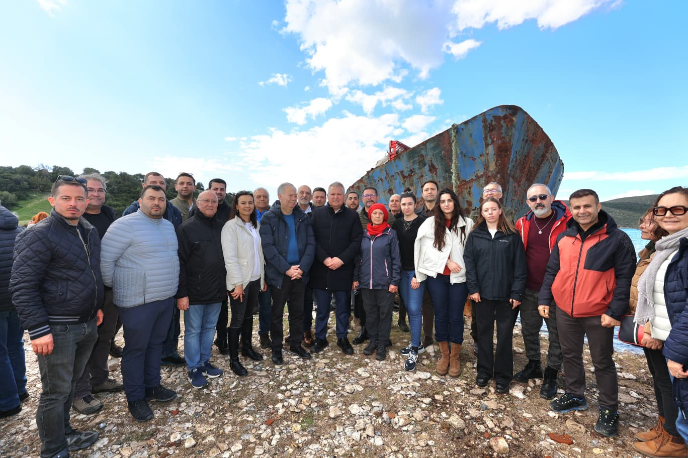 Urla’da vatandaşlar ve Belediye Başkanı Selçuk Balkan, Demircili Ada Koyu’nda hurda geminin kaldırılması için kararlılıklarını sürdürdü