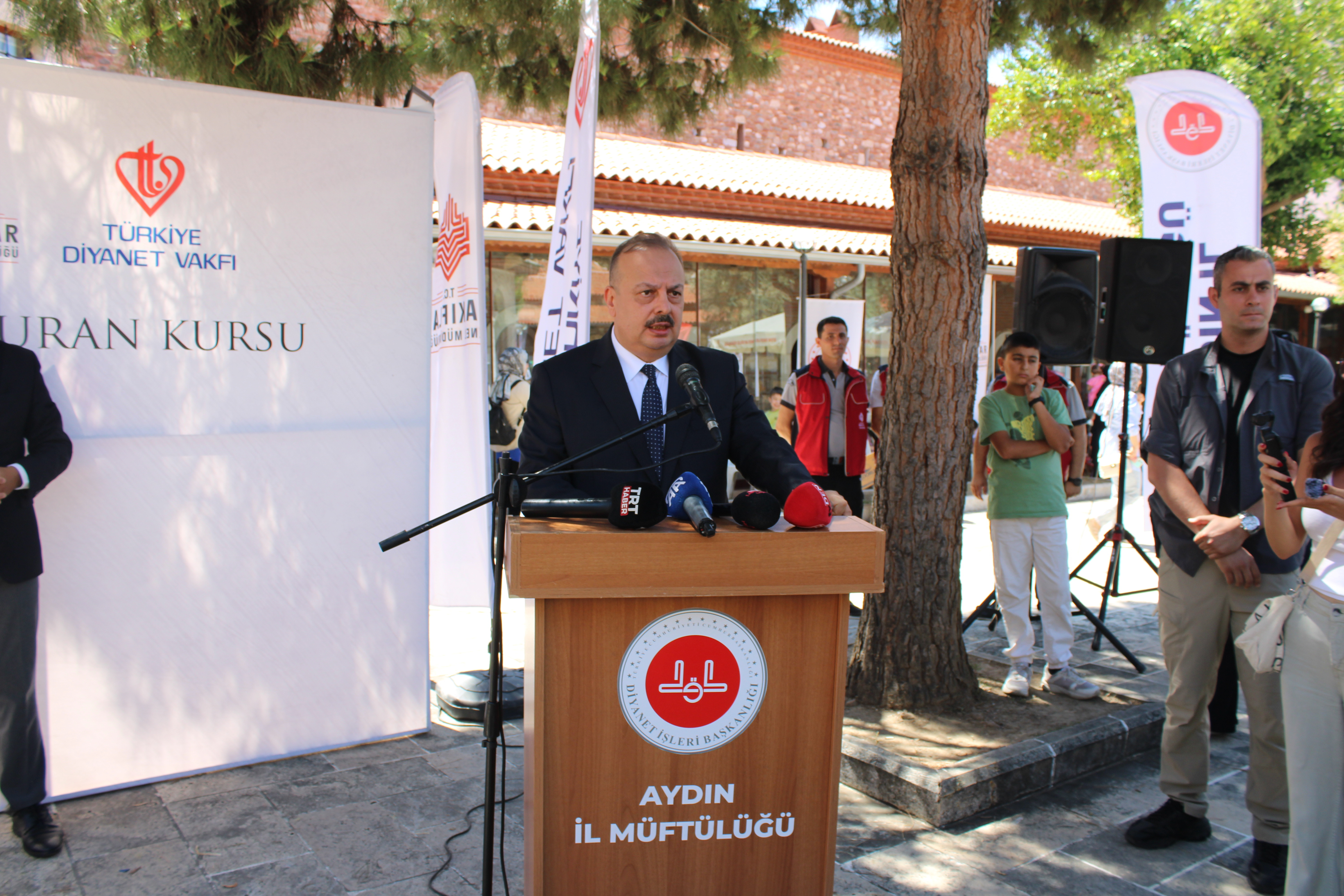 Aydın İl Müftüsü Hasan Güneş’in açılış konuşmasının ardından, Vali Canbolat günün anlam ve önemini vurgulayan bir konuşma yaptı. Filistin temalı şiir ve ilahi dinletisi programa derinlik kazandırdı. Açılış, 4-6 yaş grubu Yaz Kur’an Kursu öğrencilerinin gösterisi ve kurdele kesimiyle sona erdi.