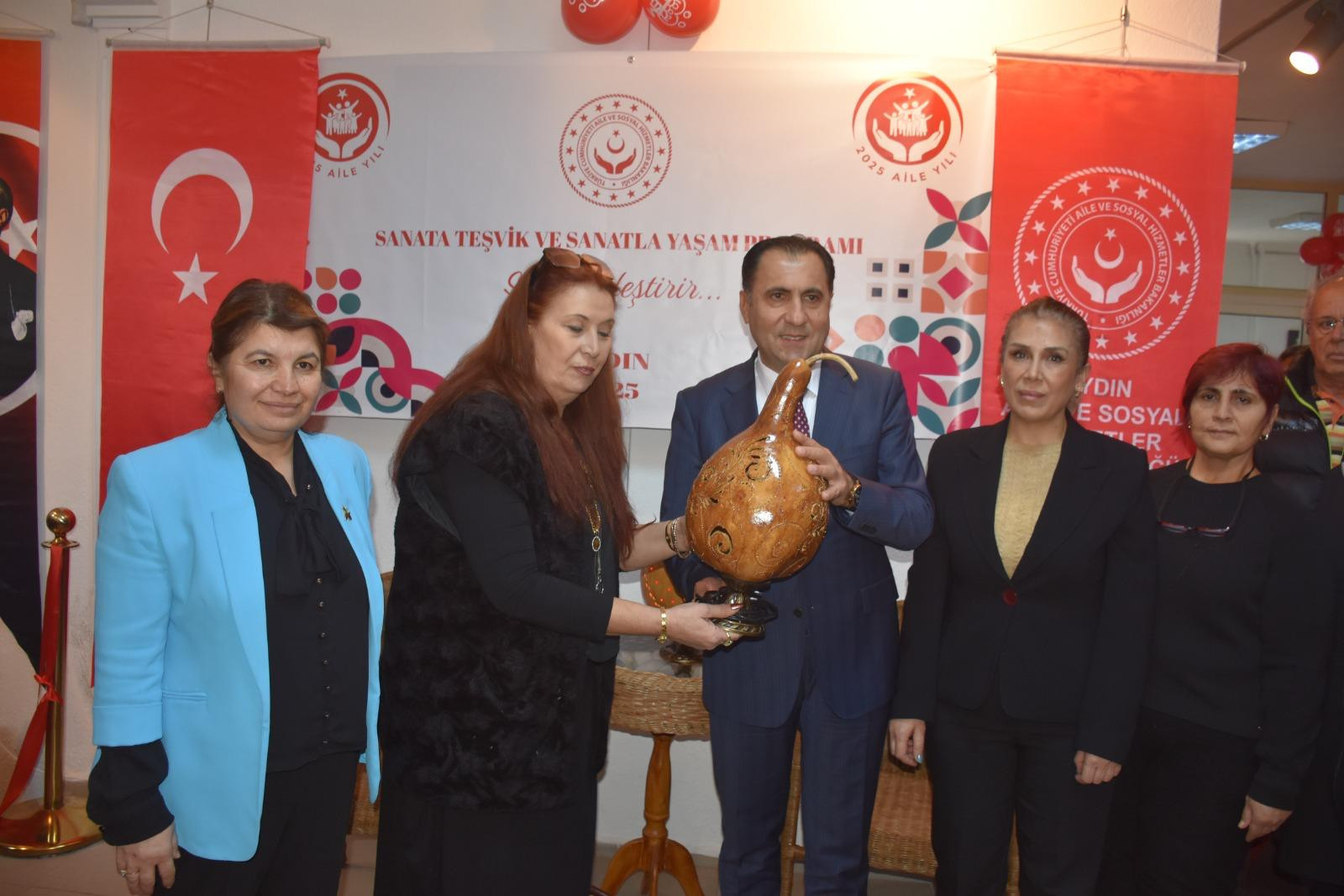 Aile ve Sosyal Hizmetler Bakanlığı’nın “Sanata Teşvik, Sanatla Yaşam Programı” kapsamında Aydın’da açılan Su Kabağı İşlemeciliği Kursu’nda üretilen eserler, Efeler’de düzenlenen törenle açıldı.