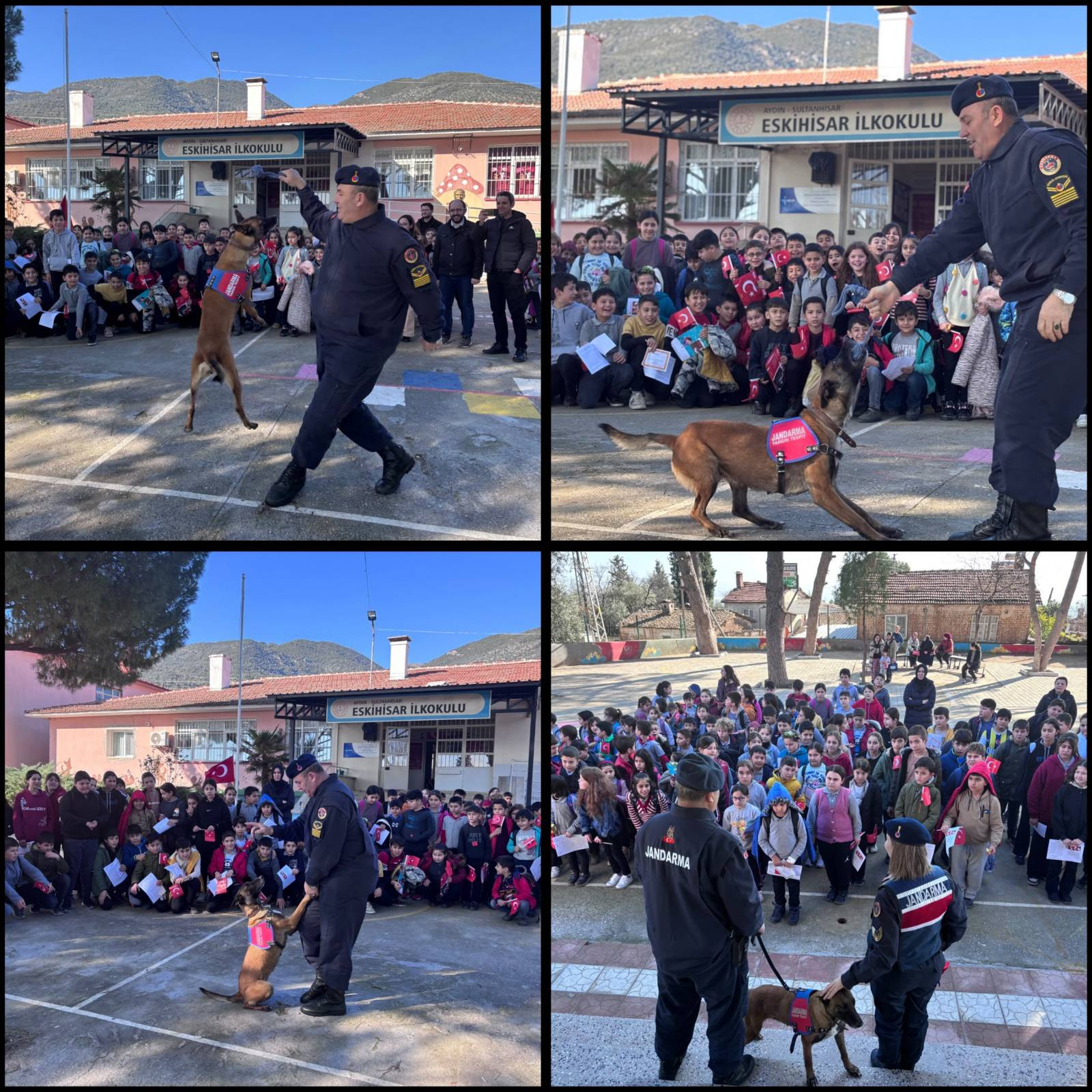 Aydın İl Jandarma Komutanlığı Aile İçi Şiddetle Mücadele ve Çocuk Kısım Amirliği, Sultanhisar İlçe Jandarma Komutanlığı ve Köpek Unsurları, Sultanhisar ilçesi Eskihisar İlköğretim Okulu'nda karne dağıtım etkinliğine katıldı. Ziyaret sırasında öğrencilere çeşitli hediyeler ve Türk bayrağı dağıtıldı.
