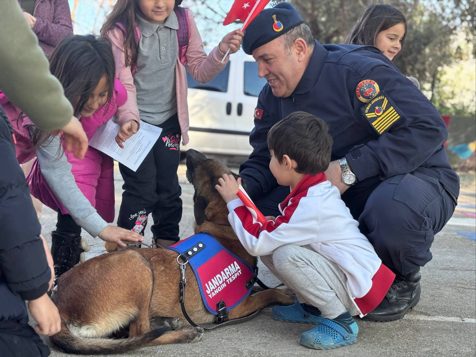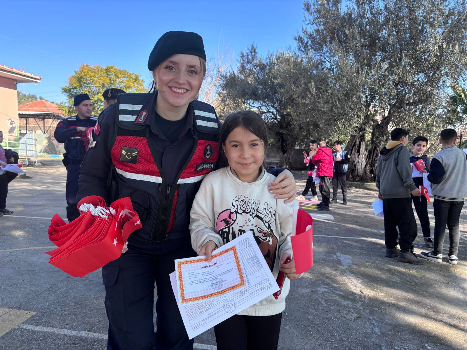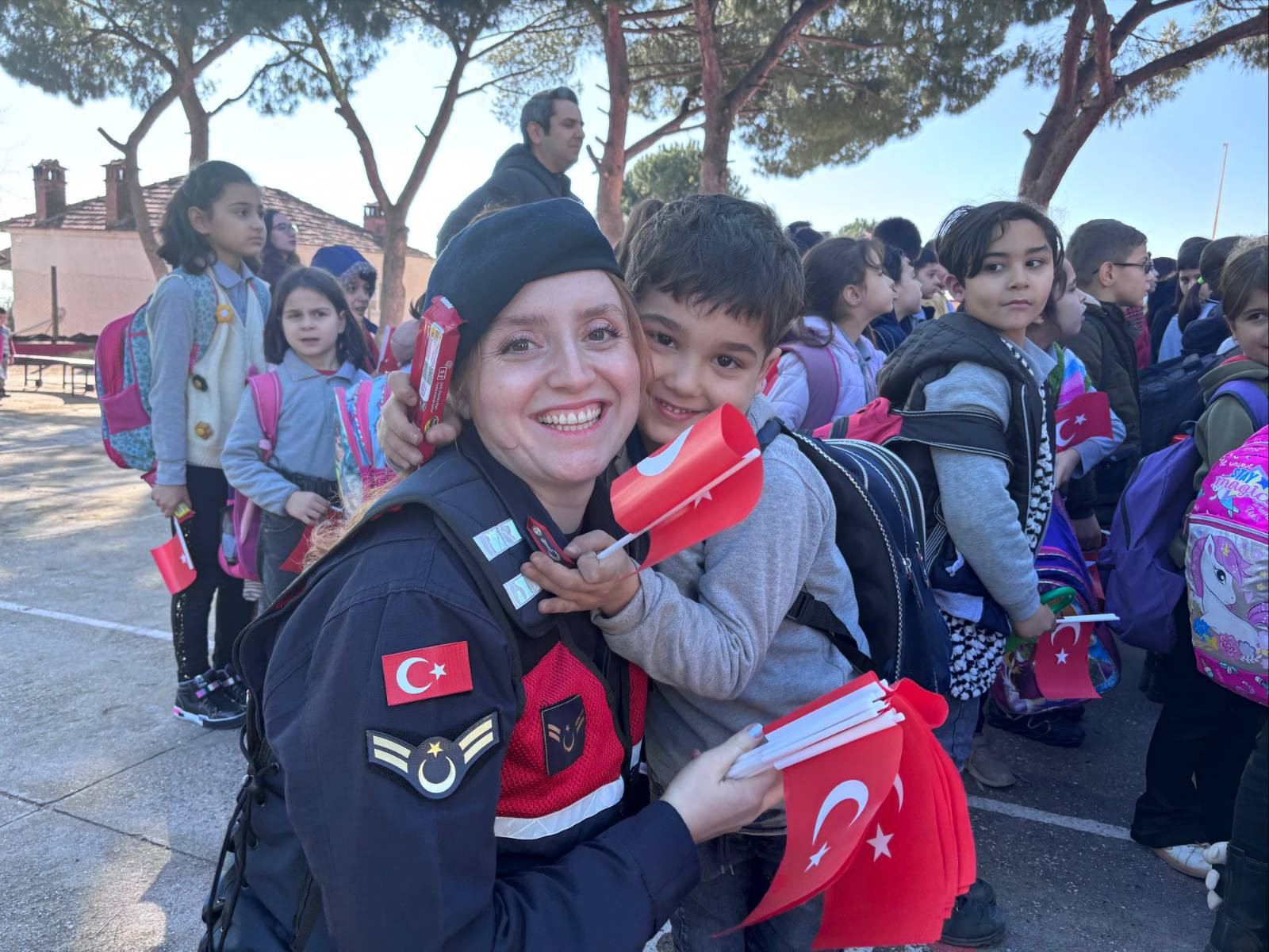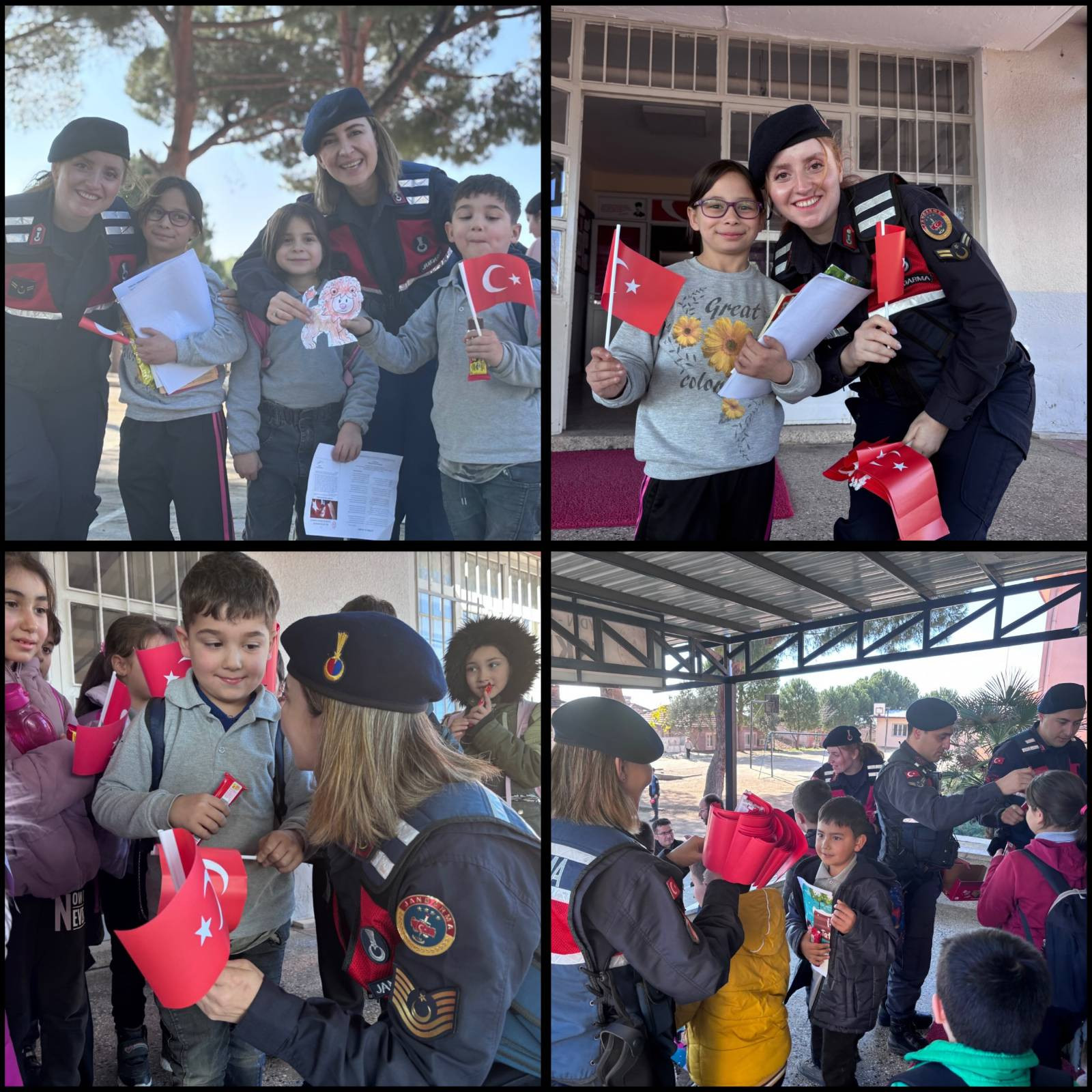 Etkinlikte, öğrencilerin heyecanını paylaşan jandarma ekipleri, "Yanlarında ve yakınlarında olduğumuz geleceğimizin teminatı öğrencilerimizin karne heyecanına ortak olmak istedik.