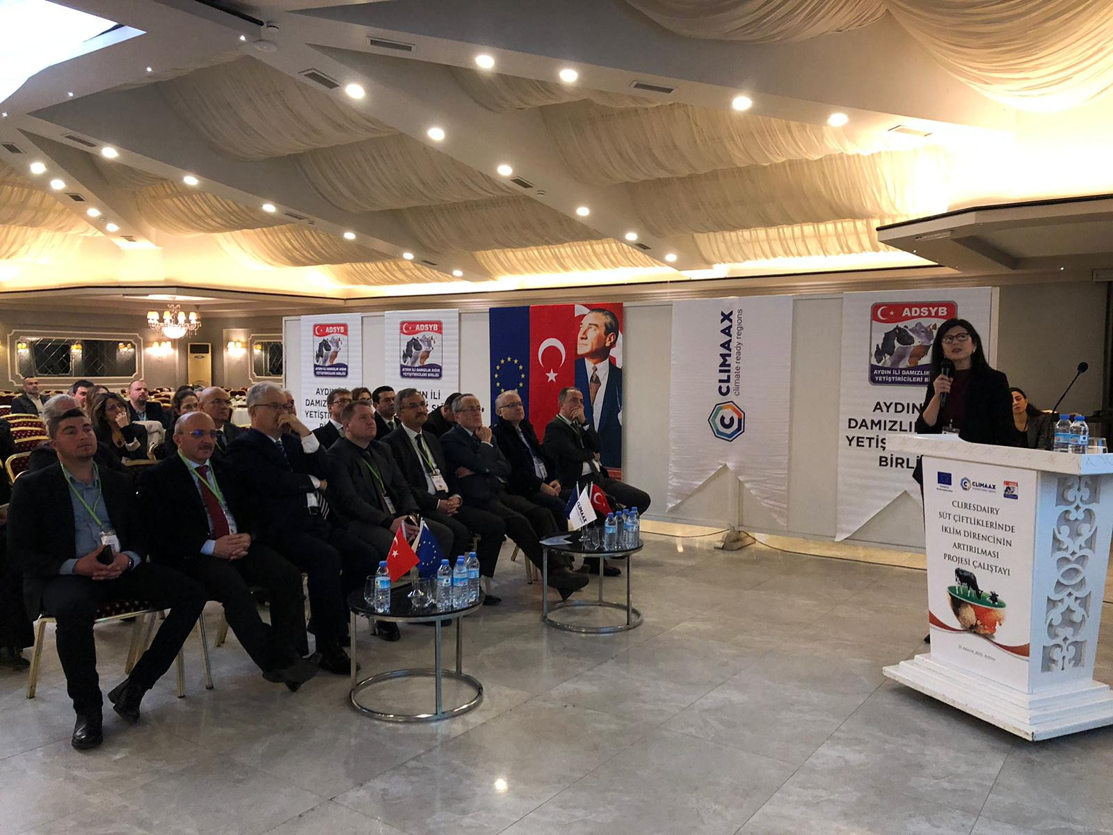 Avrupa Birliği Ufuk Avrupa Programı kapsamında desteklenen CLIMAAX Projesi çerçevesinde yürütülen “Süt Çiftliklerinde İklim Direncinin Artırılması: CliResDairy” Projesi kapsamında Aydın’da önemli bir çalıştay gerçekleştirildi. Aymira Otel’de düzenlenen toplantıda, iklim değişikliğinin süt sığırcılığı üzerindeki etkileri ile Aydın özelindeki mevcut ve olası riskler tüm yönleriyle masaya yatırıldı.