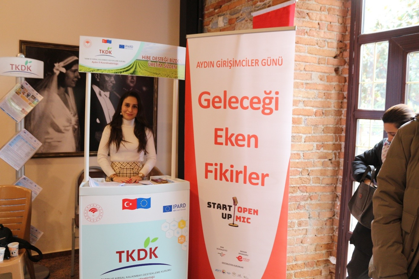 Etkinlik alanında kurulan stantlarda girişimciler projelerini tanıtma fırsatı bulurken, TKDK Aydın İl Koordinatörlüğü standında ise IPARD destekleri hakkında girişimci adaylarına ve öğrencilere detaylı bilgilendirmeler yapıldı.