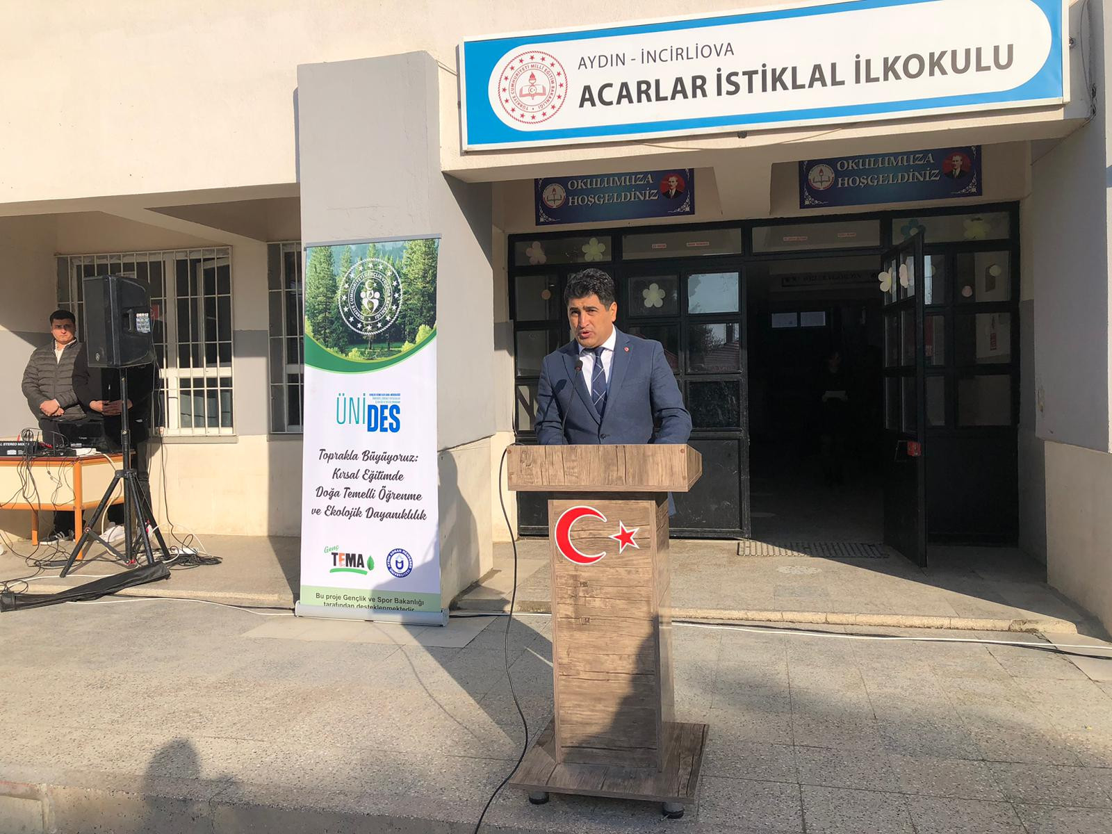 Gençlik ve Spor Bakanlığı’nın ÜNİDES Programı kapsamında desteklenen “Toprakla Büyüyoruz” projesinin ilk uygulaması, Aydın’ın İncirliova ilçesindeki Acarlar İstiklal İlkokulu’nda gerçekleştirildi.