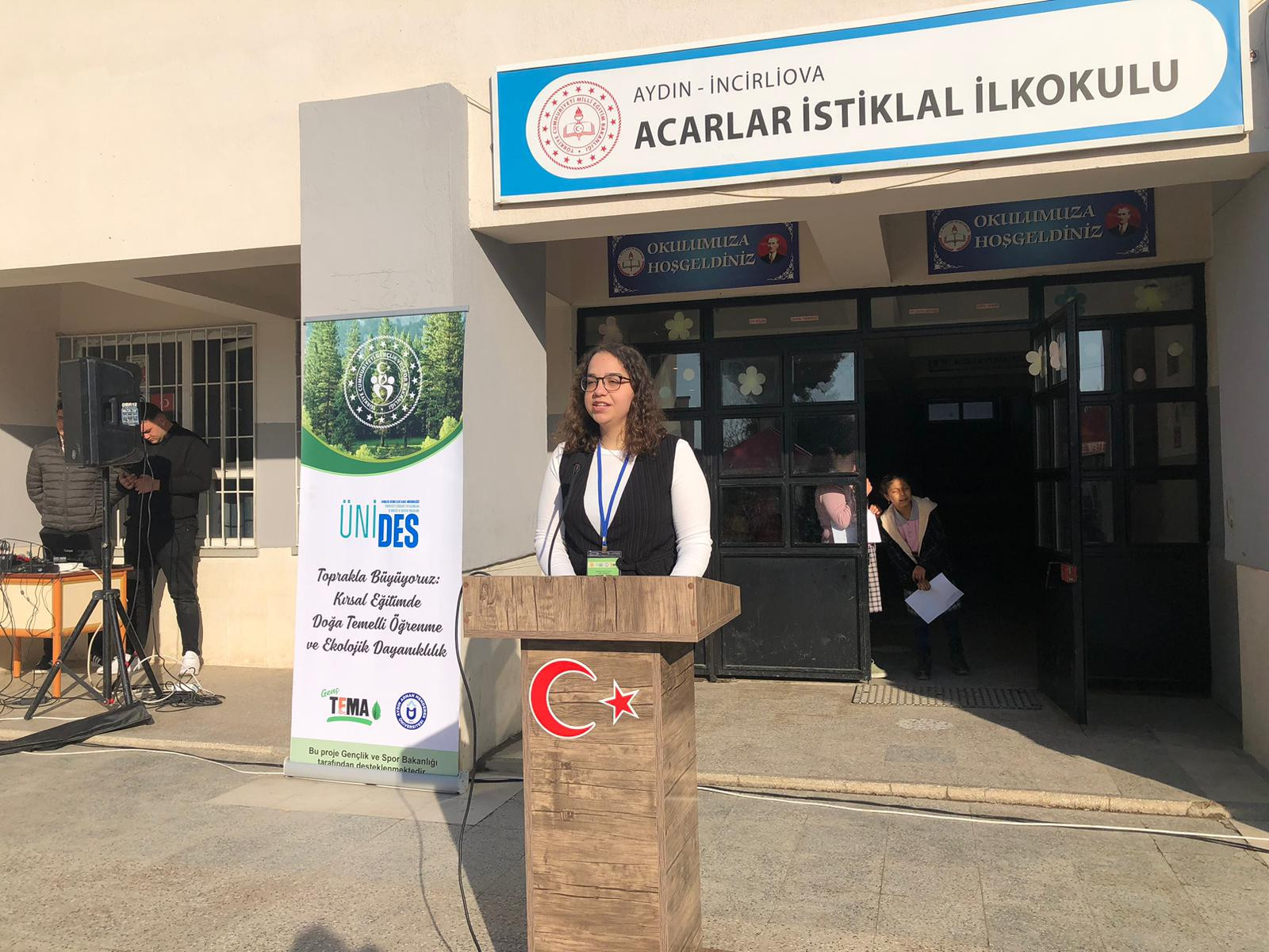 Gençlik ve Spor Bakanlığı tarafından ÜNİDES Programı kapsamında desteklenen “Toprakla Büyüyoruz: Kırsal Eğitimde Doğa Temelli Öğrenme ve Ekolojik Dayanıklılık” projesinin ilk uygulama oturumu, Aydın ili İncirliova ilçesinde bulunan Acarlar İstiklal İlkokulu’nda hayata geçirildi.