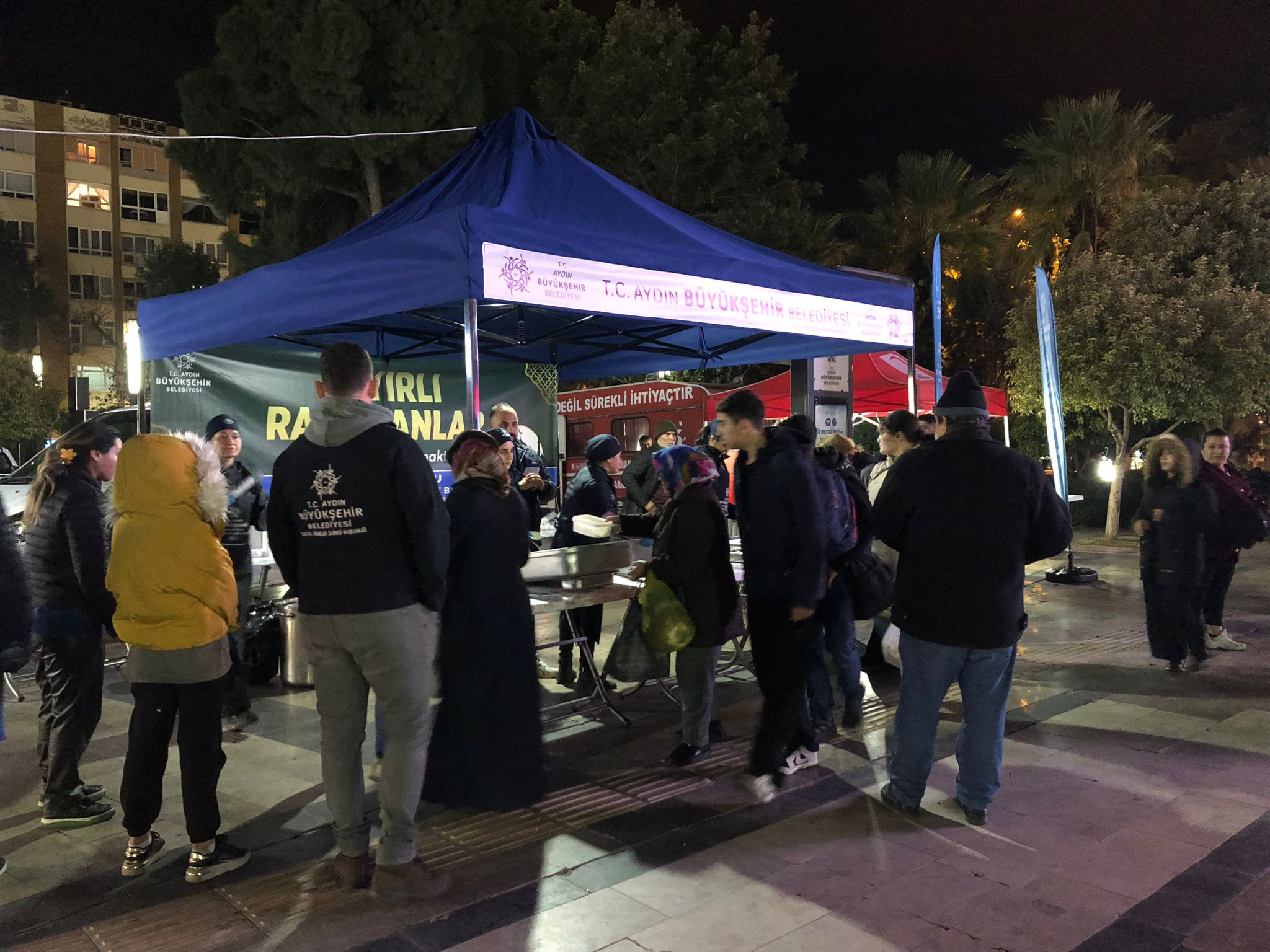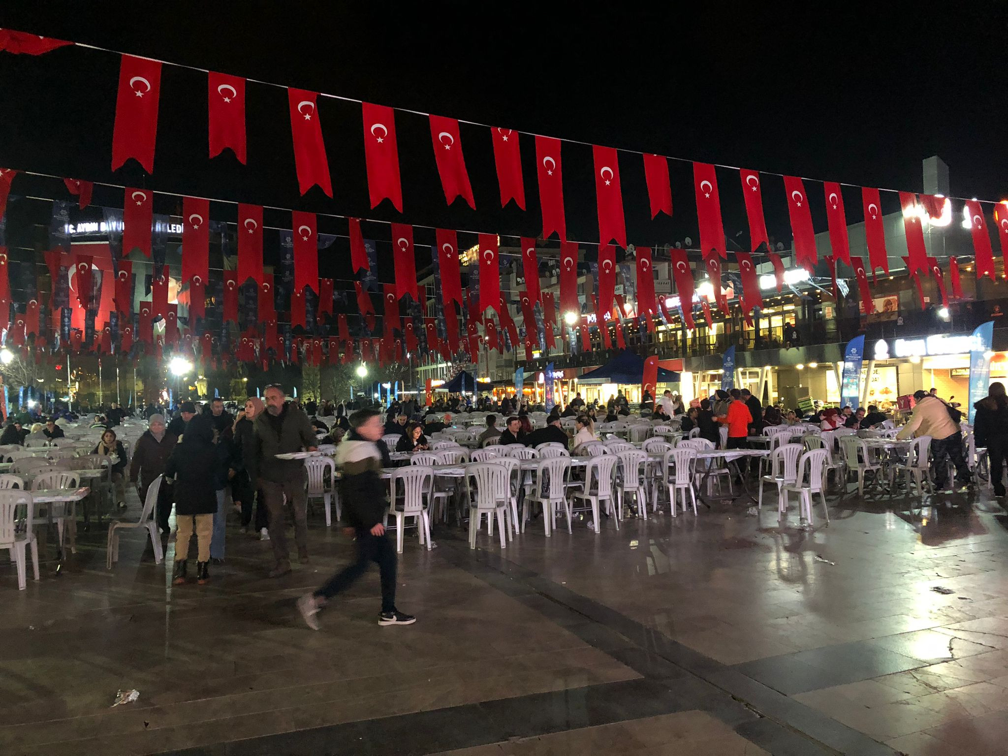 Aydın Büyükşehir Belediyesi, Ramazan ayının gelmesiyle birlikte kentin farklı noktalarında iftar sofraları kurmaya devam ediyor. Bu kapsamda Atatürk Kent Meydanı’nda kurulan iftar çadırında Ramazan ayının ilk orucu açıldı.