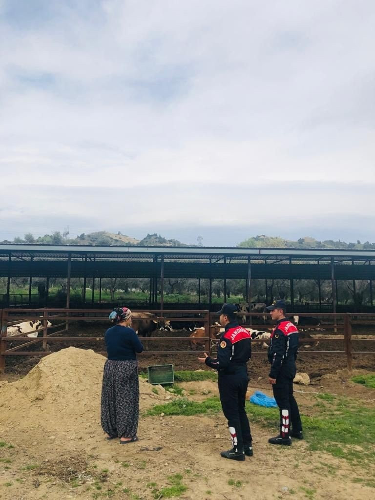 Aydın İl Jandarma Komutanlığı Asayiş Şube Müdürlüğüne bağlı ekiplerimizce, Efeler ilçesi Işıklı, Kuyulu, Emirdoğan, Eğrikavak mahallesinde, Bozdoğan ilçesi Alamut mahallesinde, Germencik ilçesi Karaağaçlı mahallesinde, Söke ilçesi Tuzburgazı, Argavlı, Çalışlı, Bağarası, Pamukçular mahallesinde, Sultanhisar ilçesi Kavaklı mahallesinde, İncirliova ilçesi Sınırteke mahallesinde bulunan hayvan çiftlikleri, aile işletmeleri ve çiftçilerimize hayvan hırsızlığı, dolandırıcılık konularında bilgilendirme yapmak ve