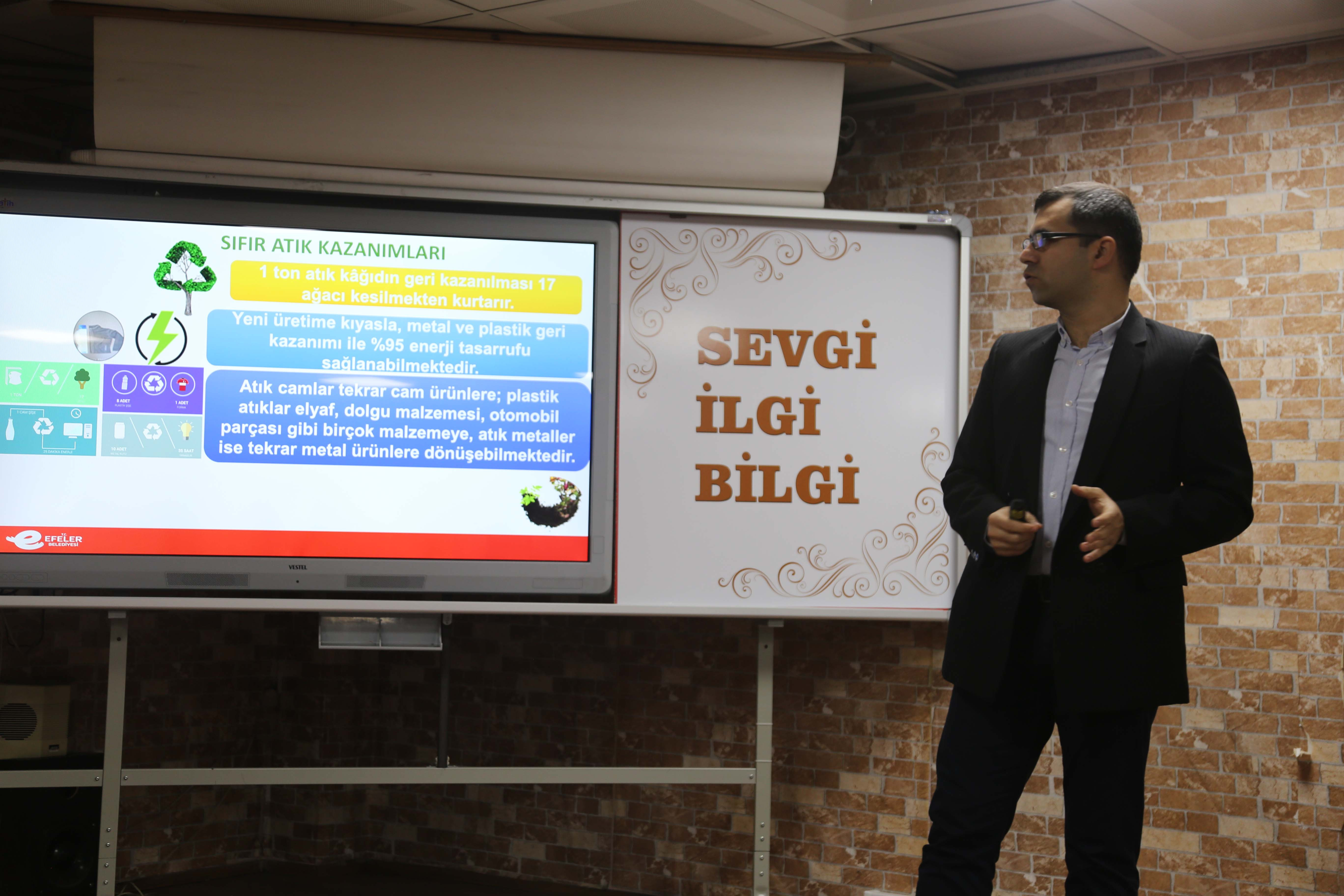 Efeler Belediyesi Çevre Koruma ve Kontrol Müdürlüğü ekipleri, öğrencilerde sıfır atık bilincinin geliştirilmesi amacıyla hayata geçirilen “Sıfır Atık” eğitimlerini sürdürüyor.