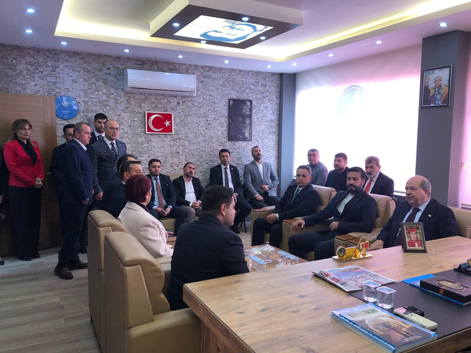 Kuzey Kıbrıs Türk Cumhuriyeti 5. Cumhurbaşkanı Ersin Tatar, Aydın Adnan Menderes Kongre Merkezi’nde gerçekleştirilen “Günümüz KKTC’nin Dünya Üzerindeki Rolü” konulu konferans kapsamında Aydın’a geldi. Mehrum Adnan Menderes’in memleketi olan Efeler diyarı Aydın’a gelen Tatar, ziyaretleri kapsamında ilk olarak Milliyetçi Hareket Partisi Aydın İl Başkanlığı’nı ve Ülkü Ocakları Aydın İl Başkanlığı’nı ziyaret etti.