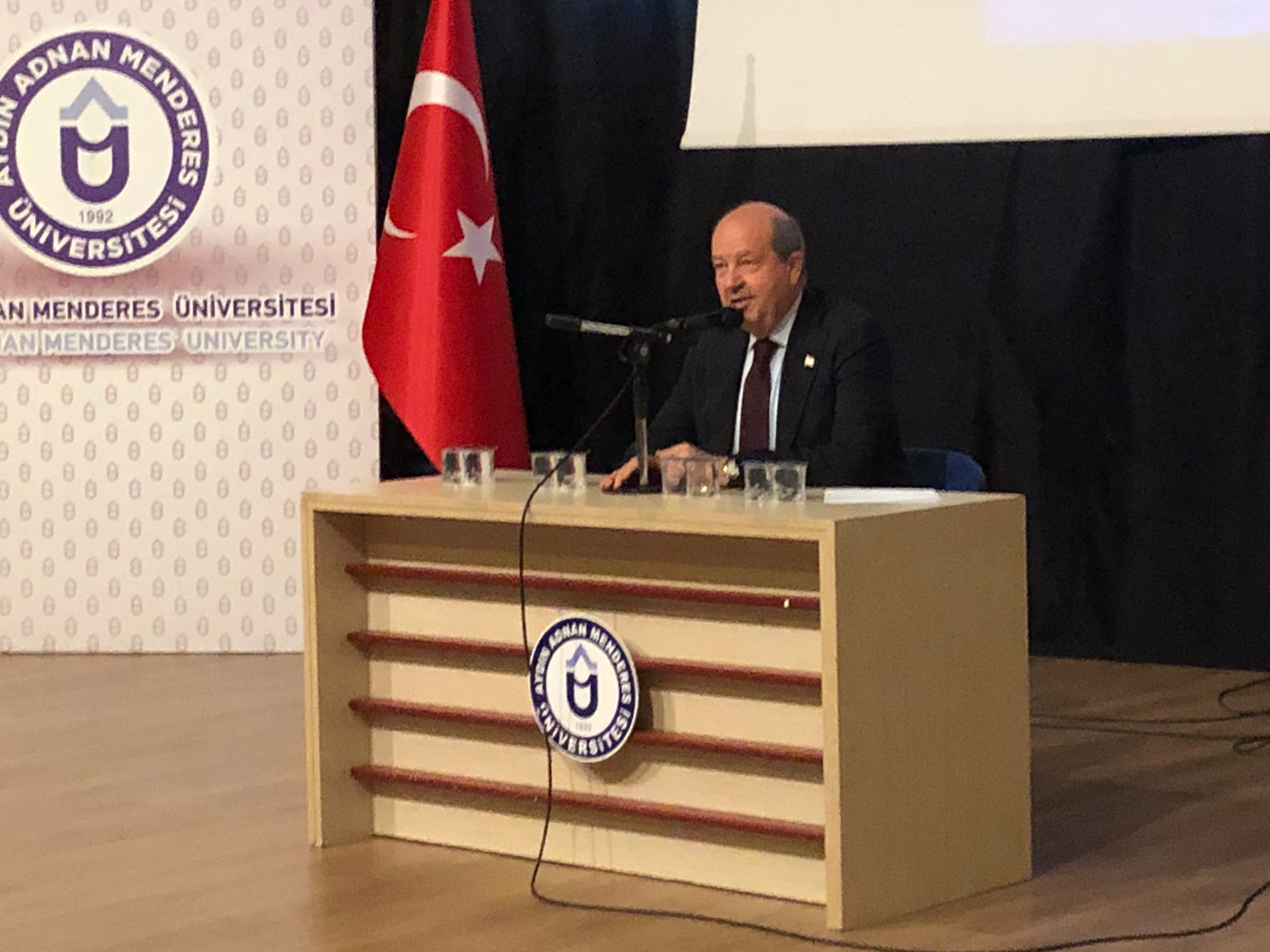 Kuzey Kıbrıs Türk Cumhuriyeti 5. Cumhurbaşkanı Ersin Tatar, Aydın Adnan Menderes Kongre Merkezi’nde “Günümüz KKTC’nin Dünya Üzerindeki Rolü” konulu konferansa katıldı.