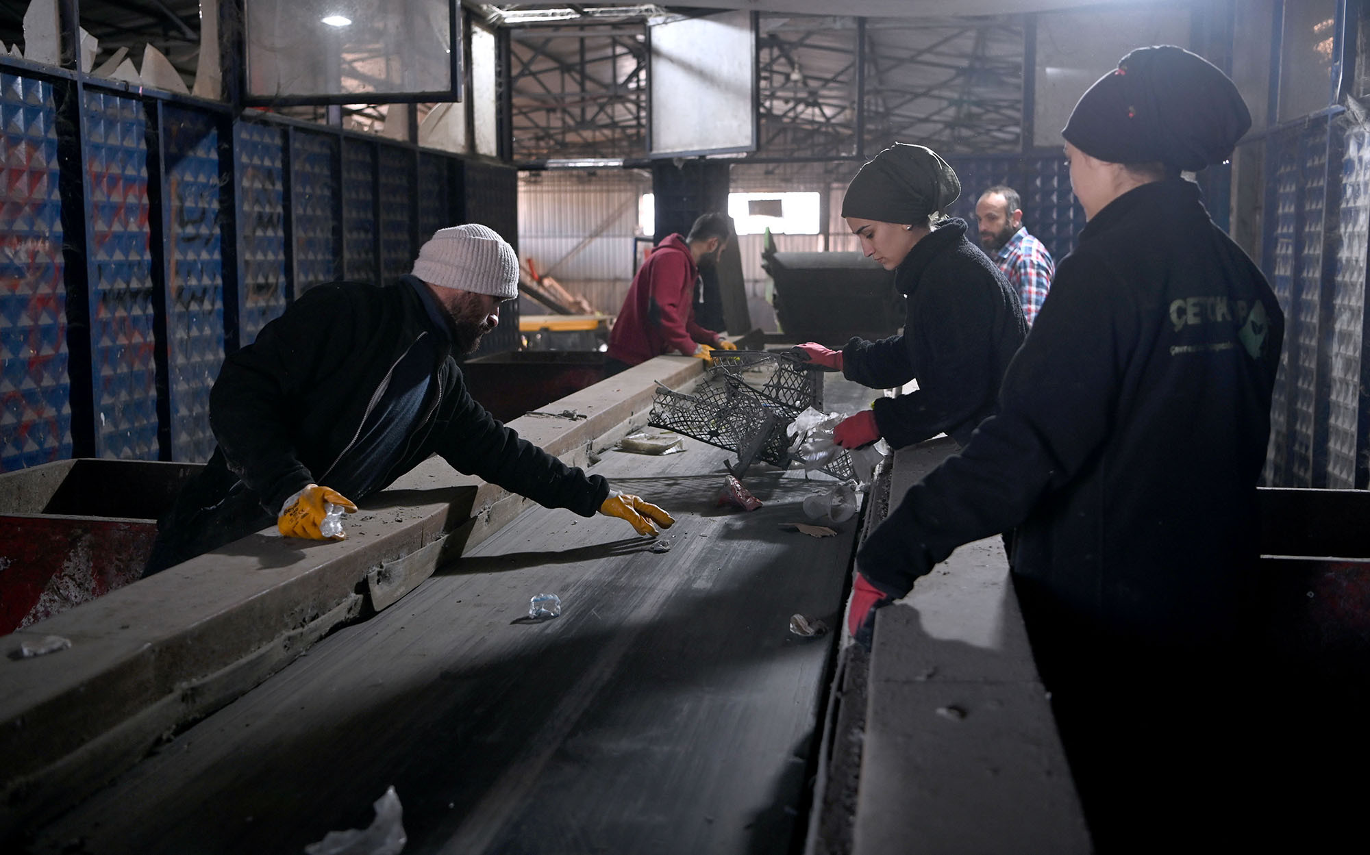 İklim Değişikliği ve Sıfır Atık Müdürlüğü koordinasyonunda yürütülen çalışmalarda, geri dönüştürülebilir atıklar Kuşadası Belediyesi Ambalaj Atıkları Toplama ve Ayırma Tesisinde türlerine göre ayrıştırılarak hem ekonomiye kazandırıldı hem de çevresel ekosistemin korunmasına katkı sağlandı.
