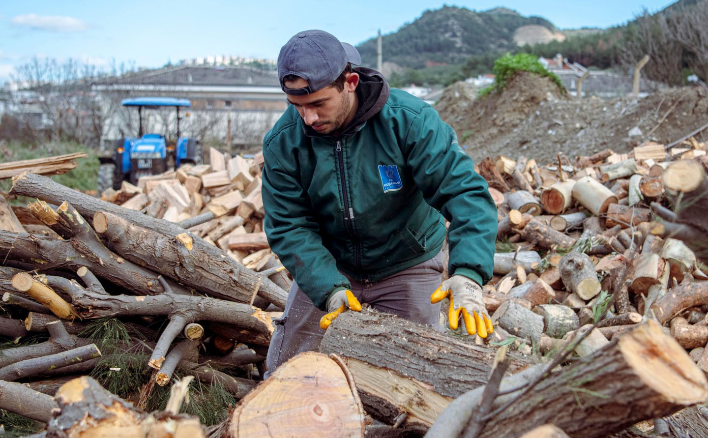 Kuşadası Belediyesi, kent genelinde yapılan budama çalışmalarından elde edilen ağaç atıklarını yakacak odun haline getirerek ihtiyaç sahibi ailelere ulaştırıyor.